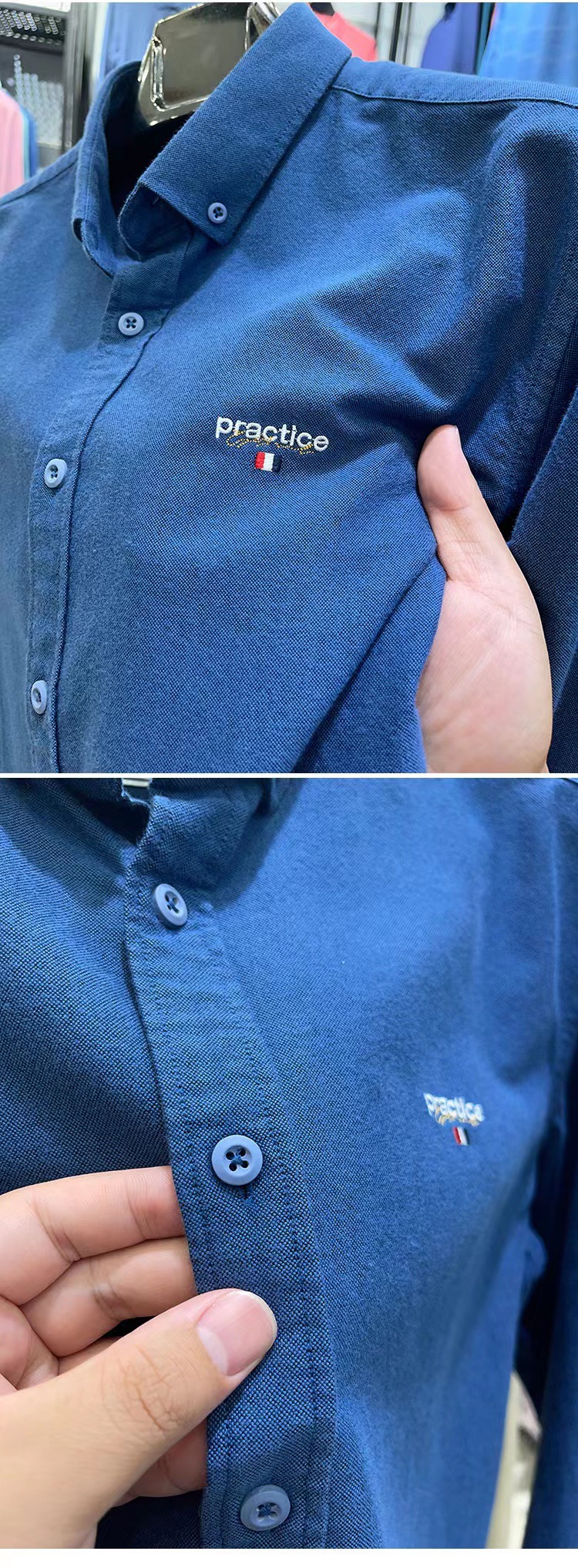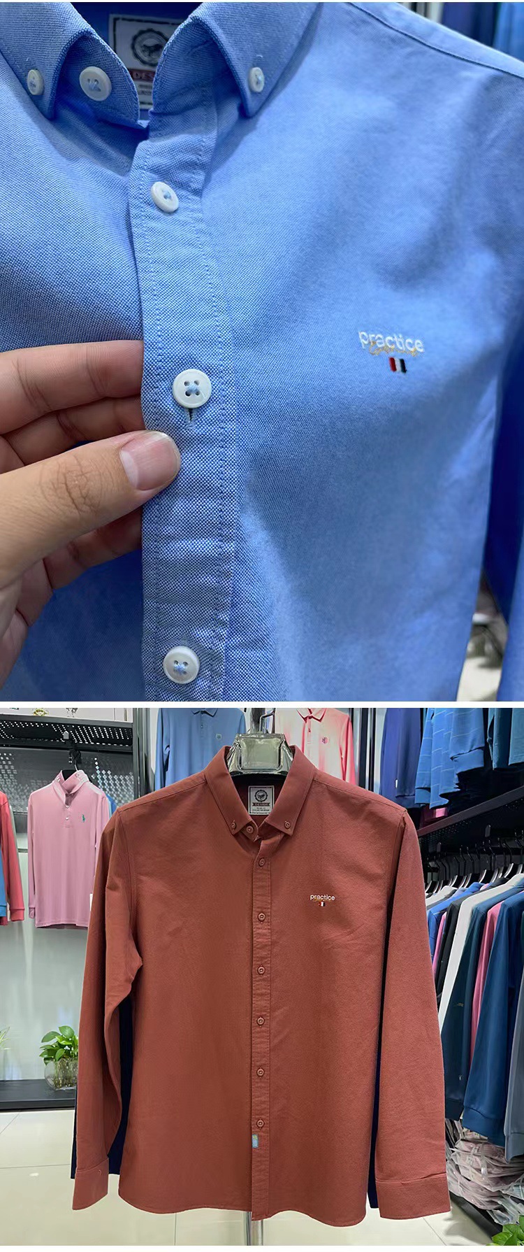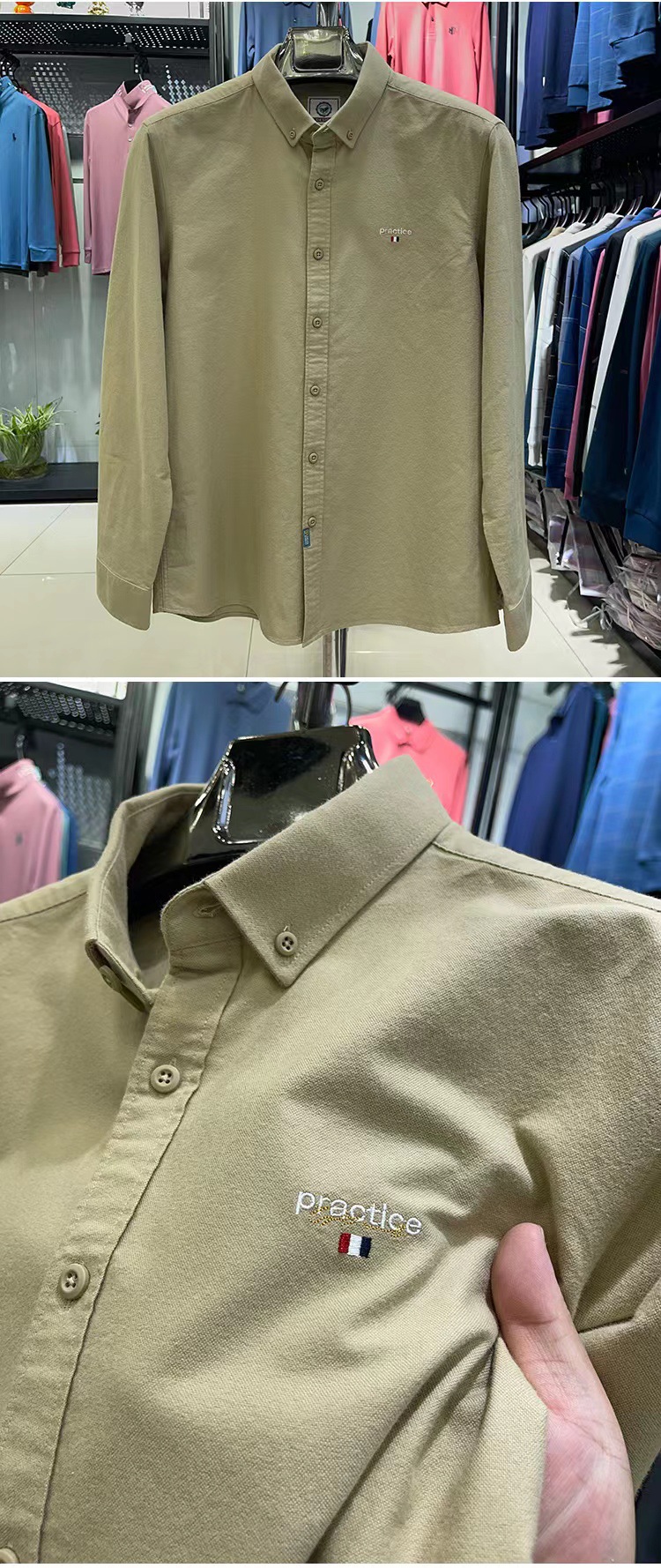 100 면 셔츠 남자의 긴 소매 캐주얼 옥스포드 스핀 솔리드 컬러 자수 남성 셔츠 가을 재킷 무료 다림질 도매스토어 가기
