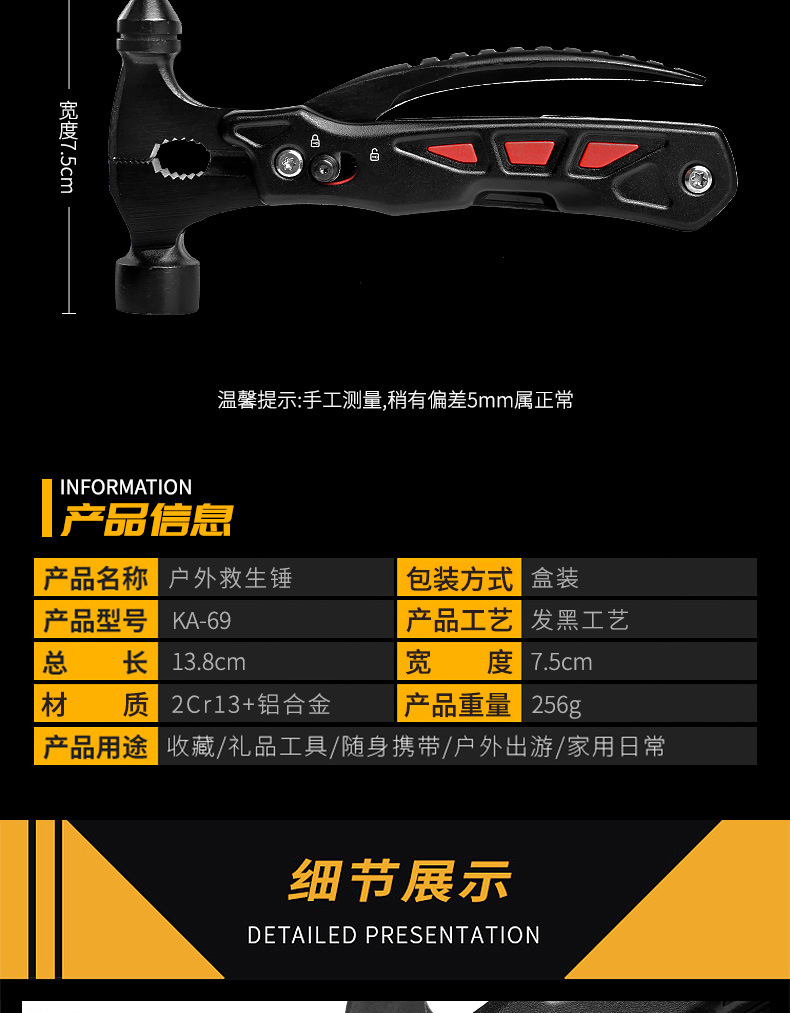 • KA-69 인명 구조 해머 건 그레이 및 블랙