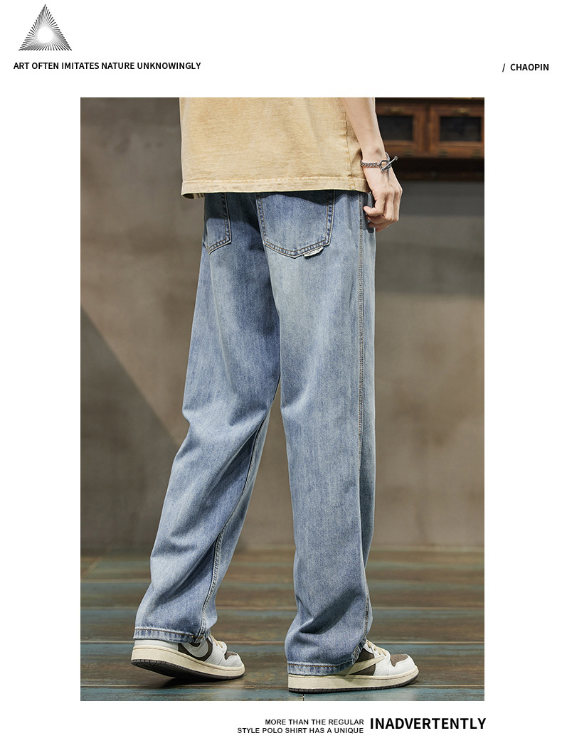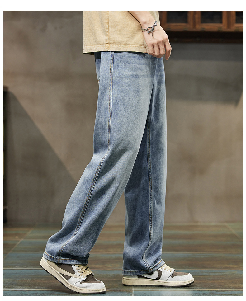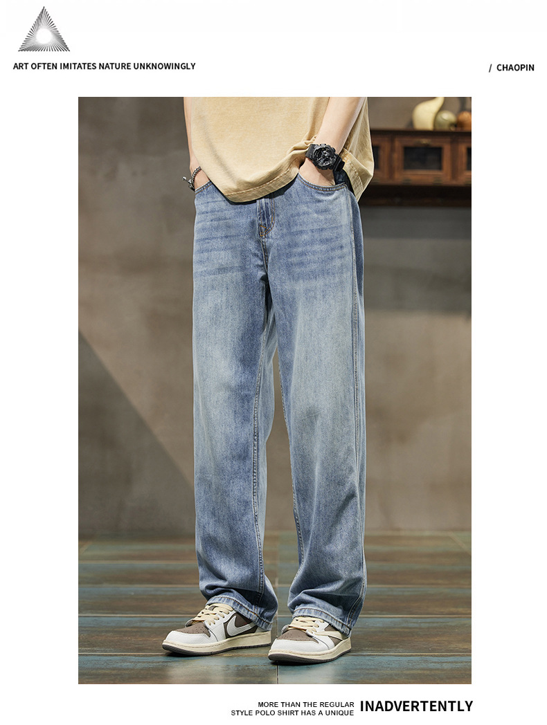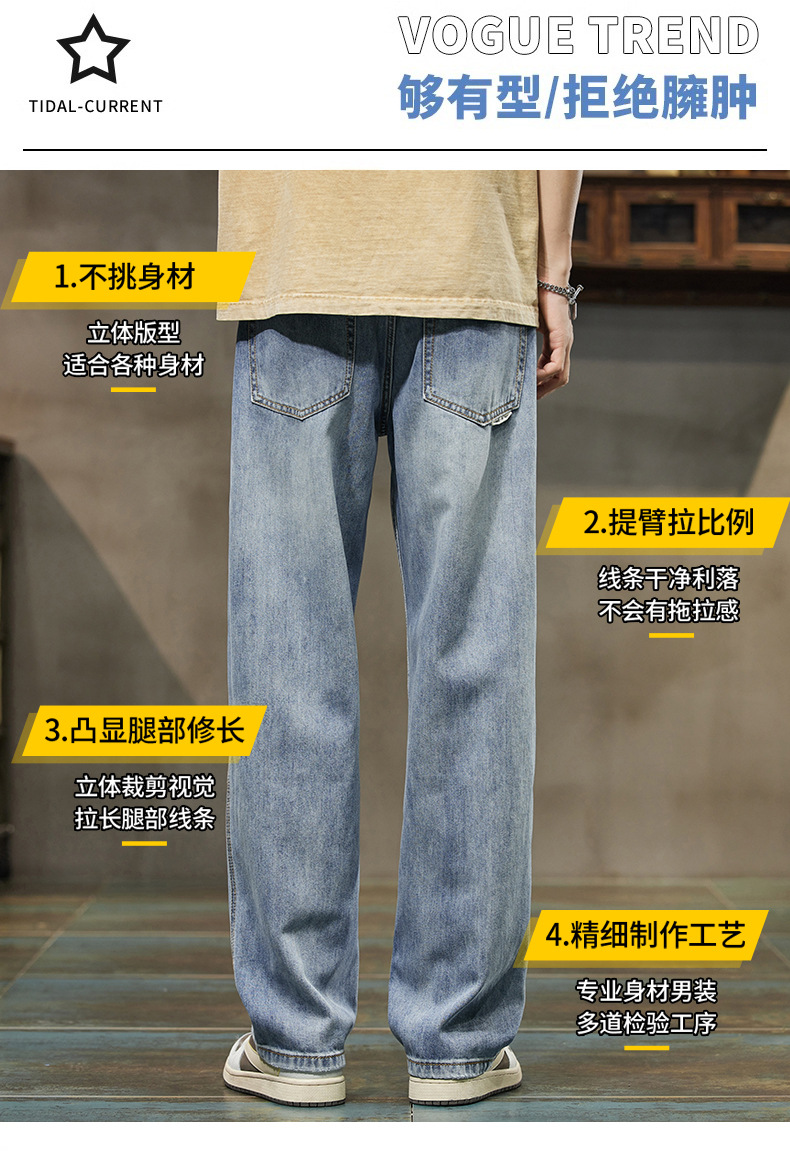 2024 봄/여름 텐셀 레이셀 데님 루즈핏 스트레이트 심플 캐주얼 롱 팬츠 트렌디 브랜드 데님 팬츠 얇은 스타일스토어 가기
