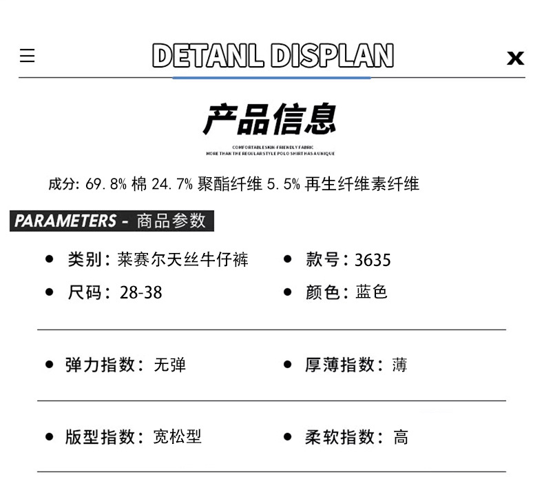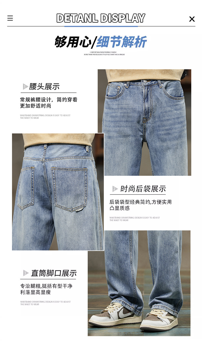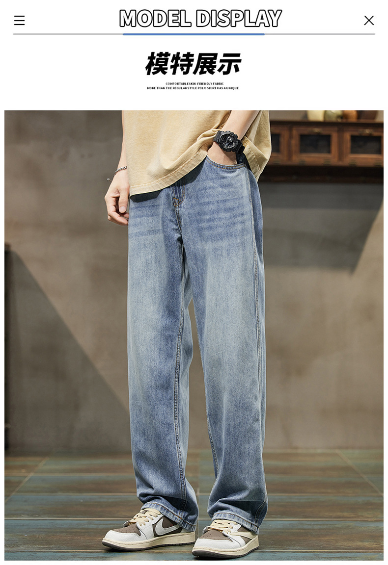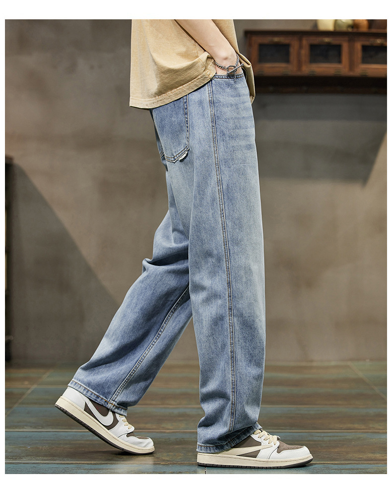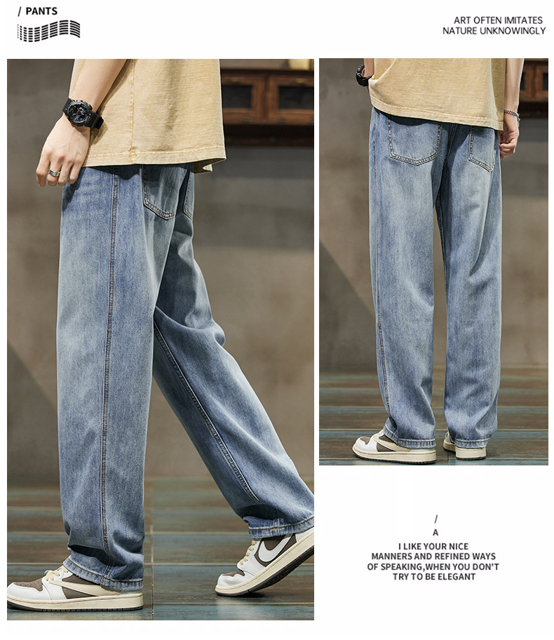 2024 봄/여름 텐셀 레이셀 데님 루즈핏 스트레이트 심플 캐주얼 롱 팬츠 트렌디 브랜드 데님 팬츠 얇은 스타일스토어 가기