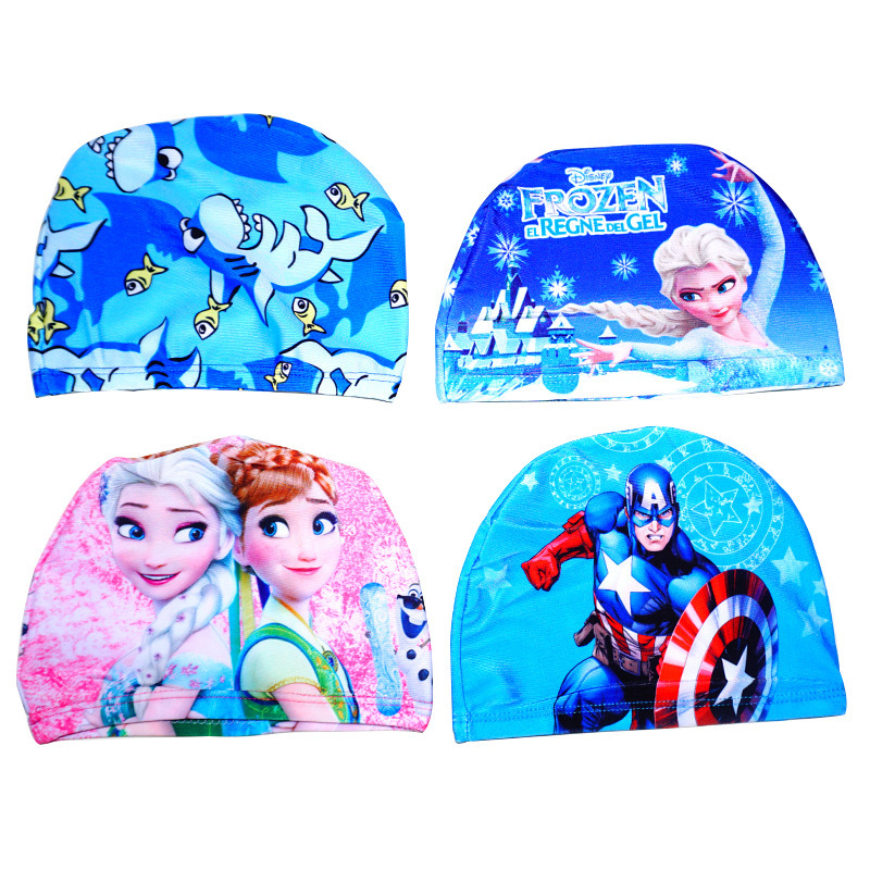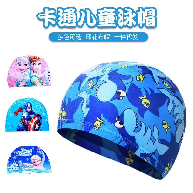 도매 어린이 수영 모자 만화 인쇄 하이 엔드 패브릭 소년과 소녀 아기 어린이 만화 수영 모자 천 수영 모자