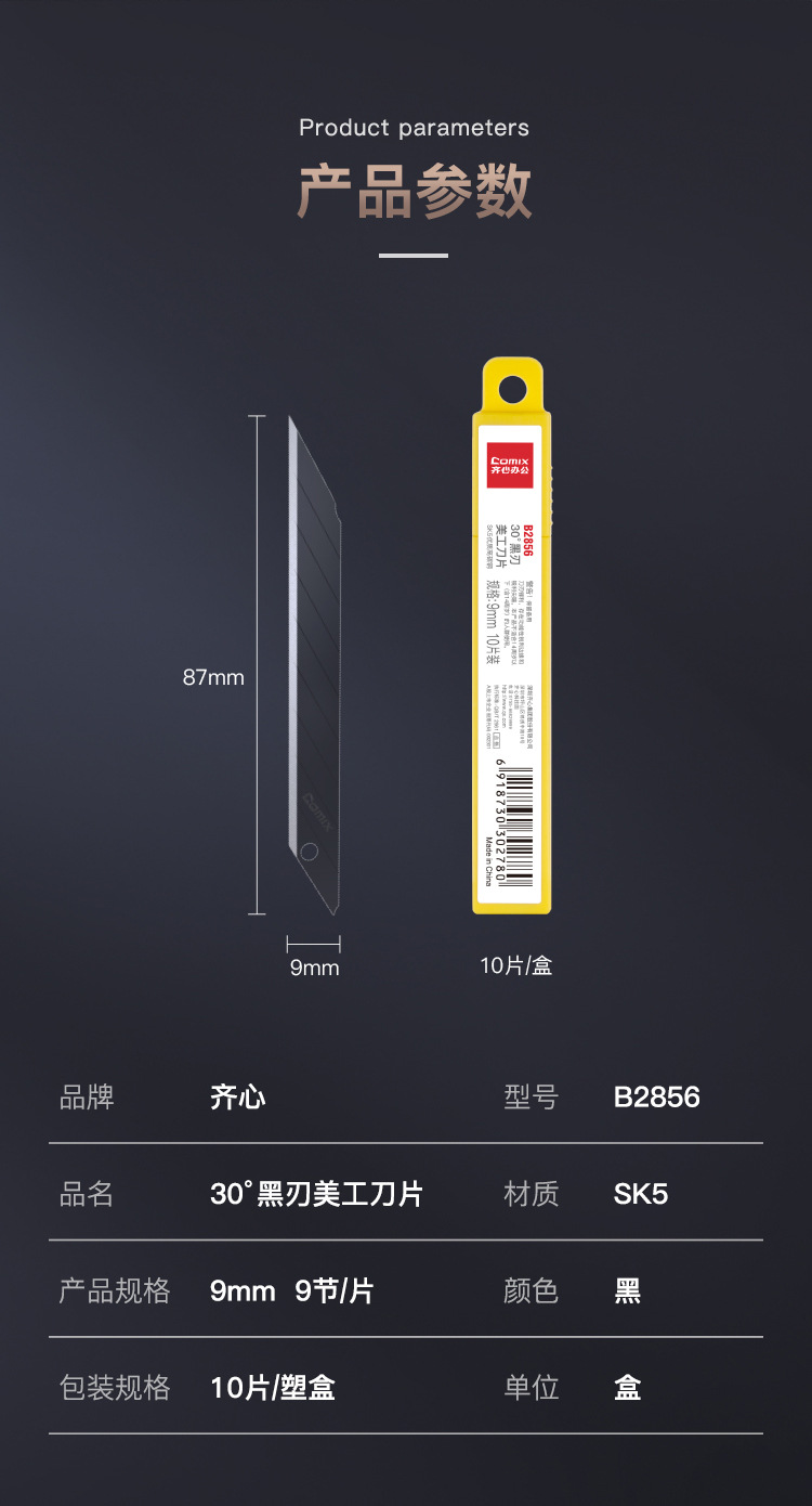 Qixin 블랙 블레이드 아트 블레이드 도매 B2856 사무실 가정용 종이 커터 SK5 높은 탄소 강철은 손 조각을 할 수 있습니다스토어 가기