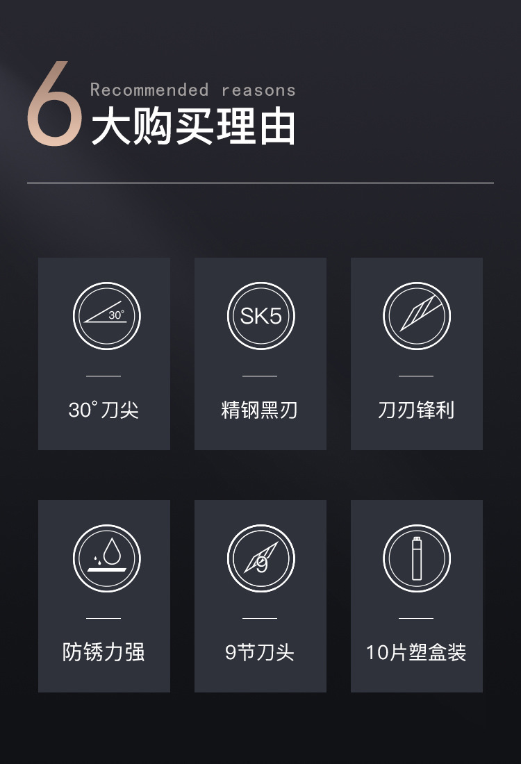 • B2857 60 ° 검은 가장자리 녹 방지 아트 블레이드 9mm
