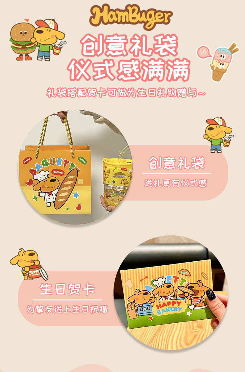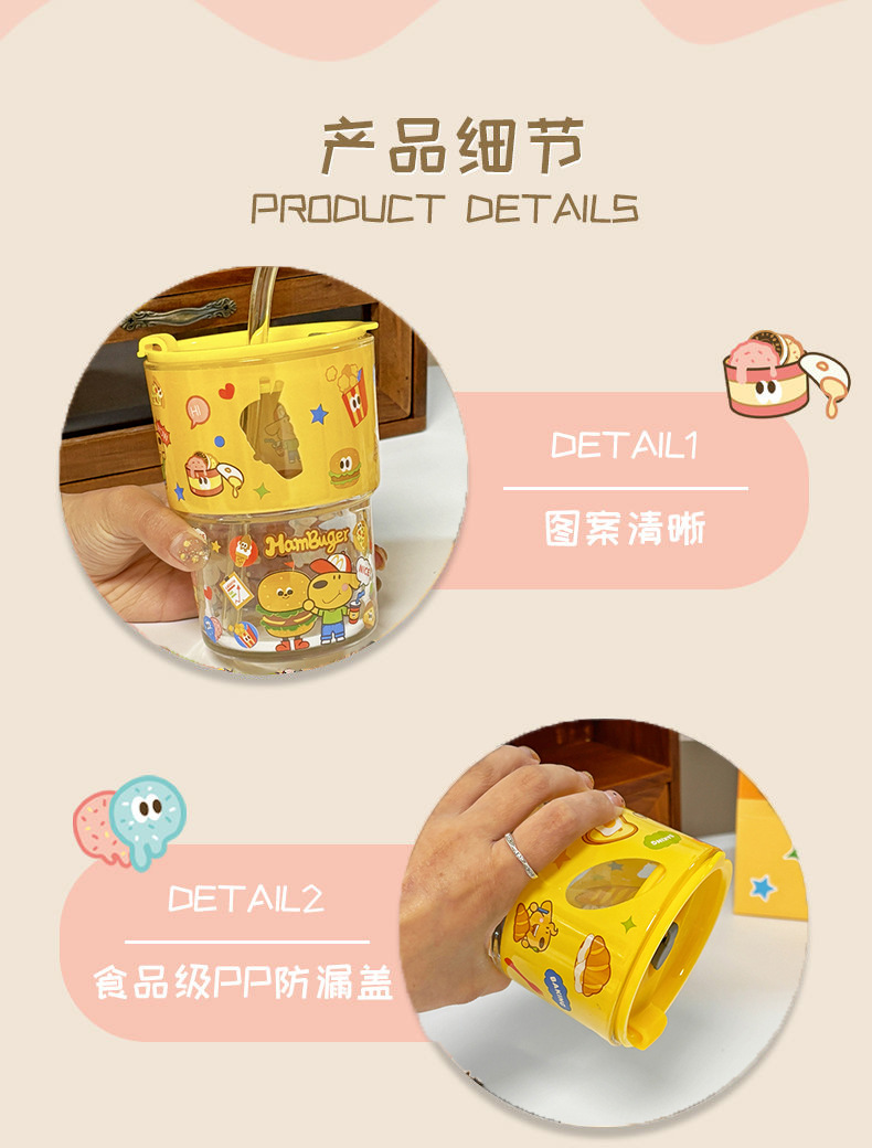 키어 개 햄버거 유리 컵 밀짚 컵 뚜껑 선물 상자 귀여운 만화 가정용 물 컵 여성 생일 선물스토어 가기