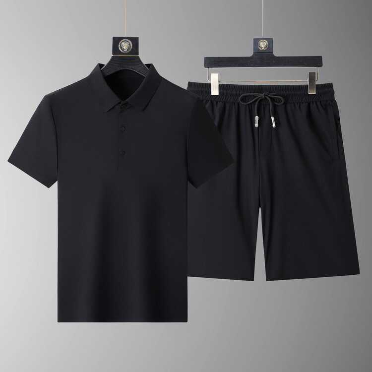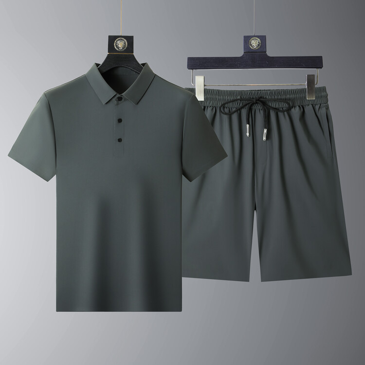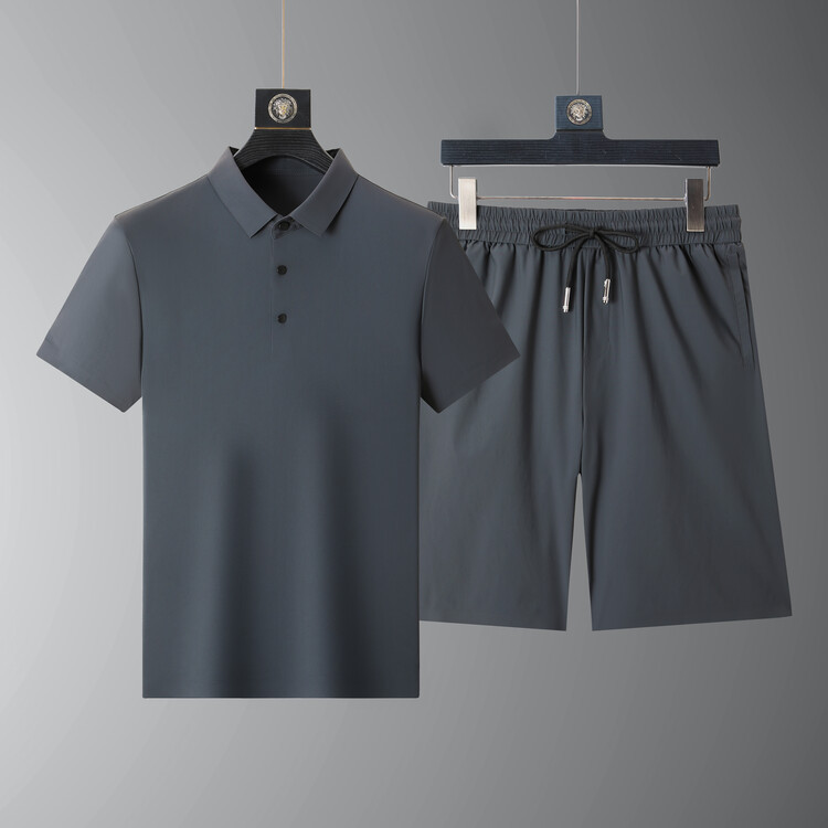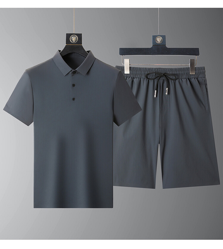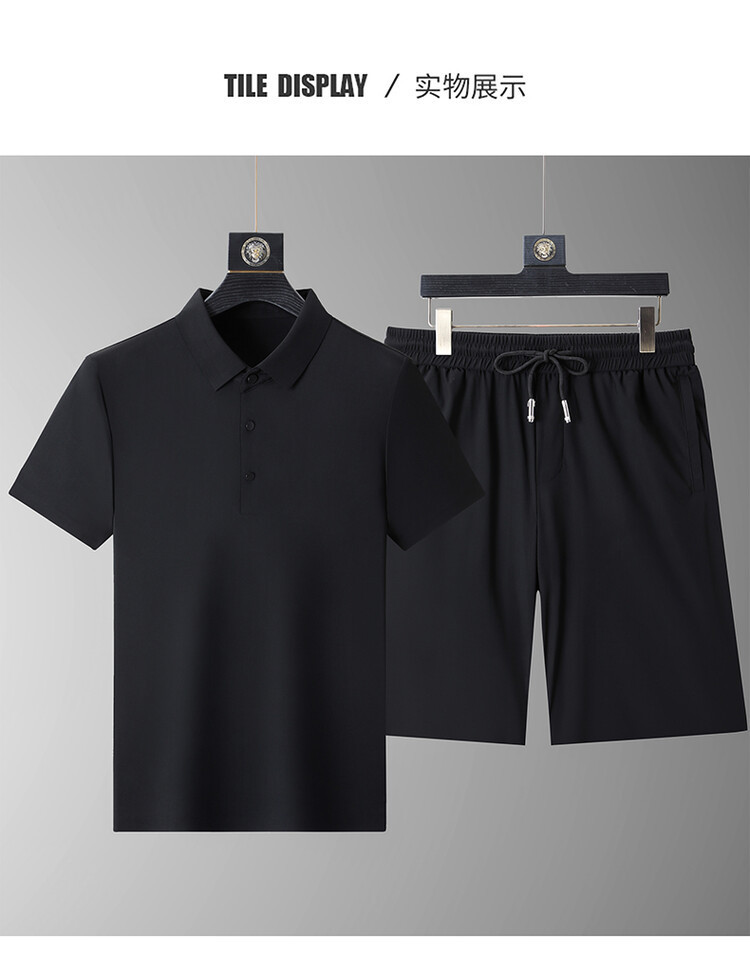 夏季冰丝男士套装含桑蚕丝宽松休闲男新款短裤薄款运动翻领短袖男