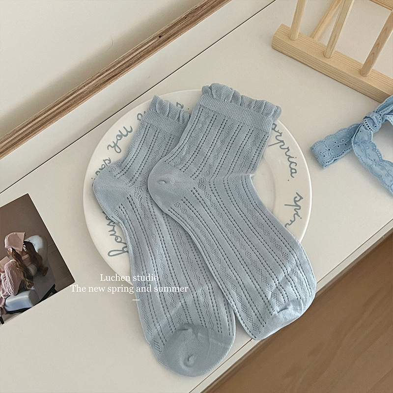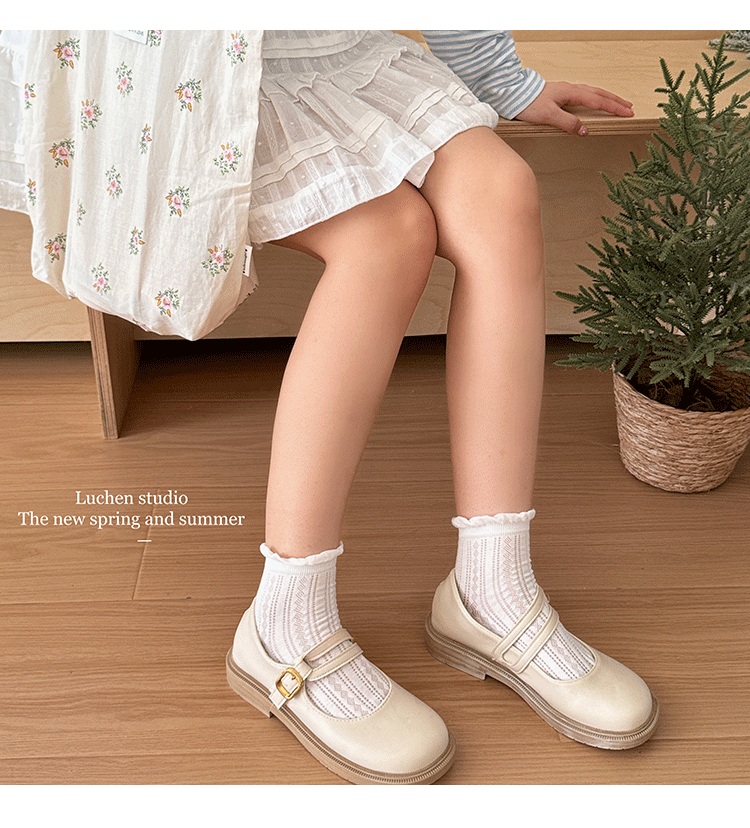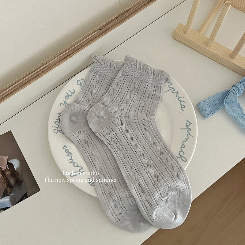 메리 제인 레이스 양말 여성의 여름 얇은 단색 중공 메쉬 통기성 뼈없는 양말 어린이 신발스토어 가기