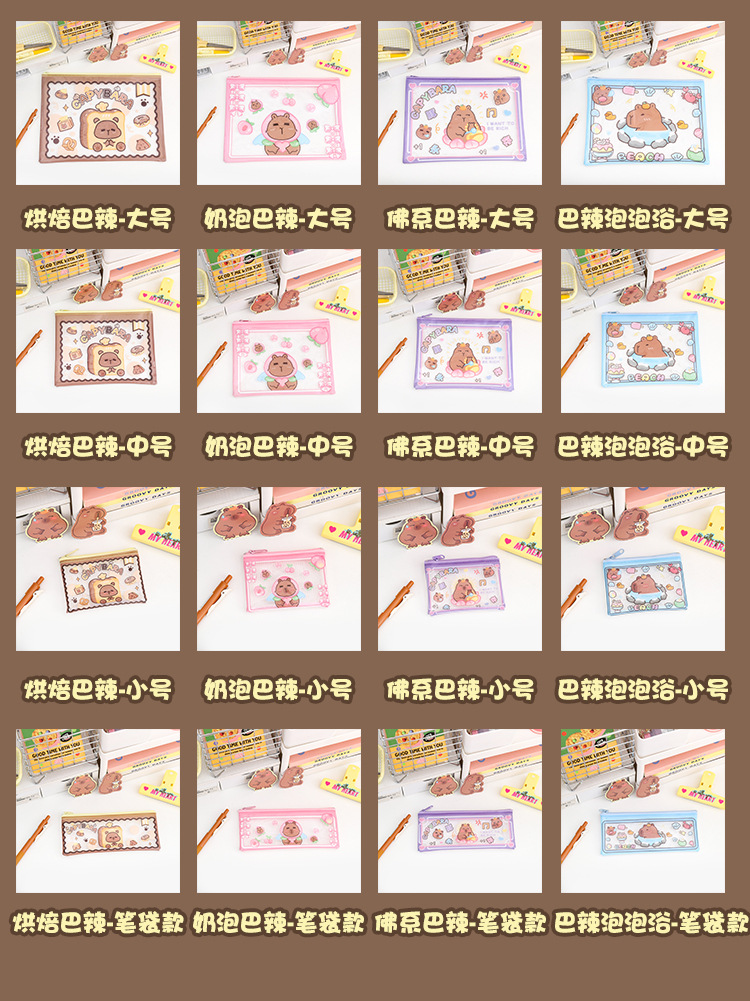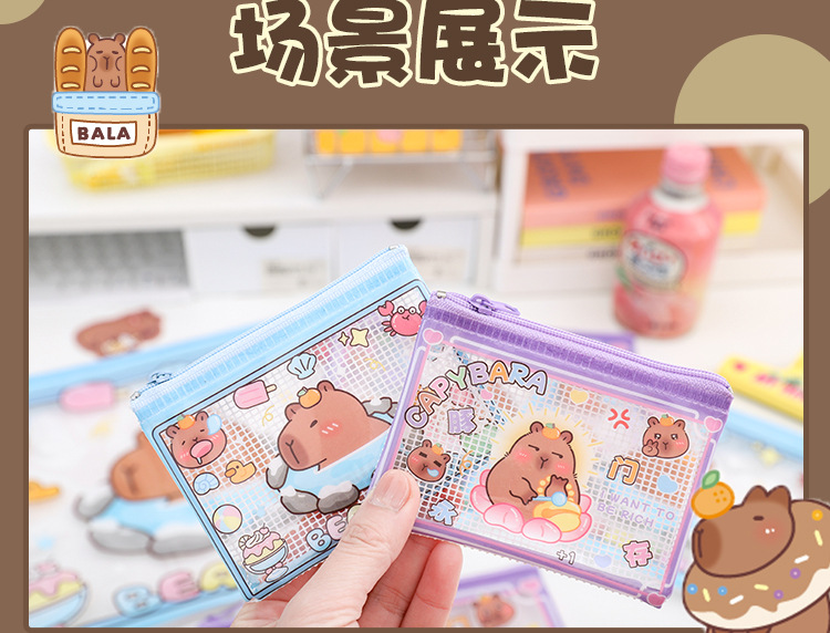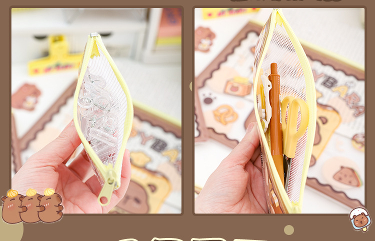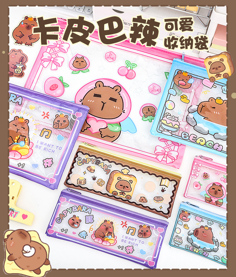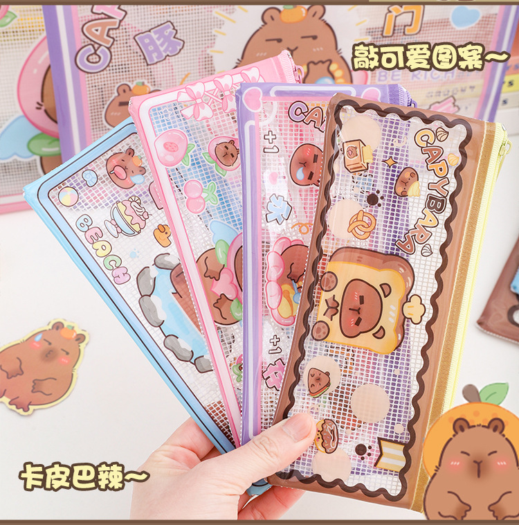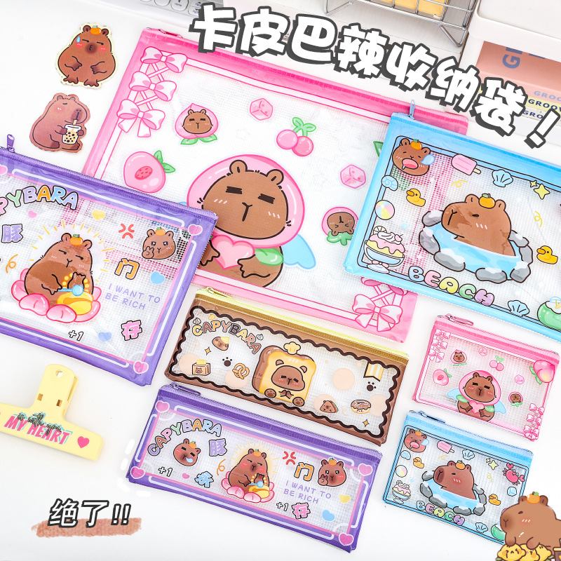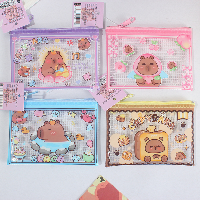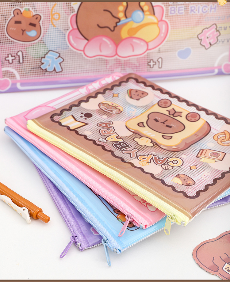카피발라 메쉬백 A4 지퍼백 귀여운 패턴 투명 문구류 정리 가방 분류 파일백