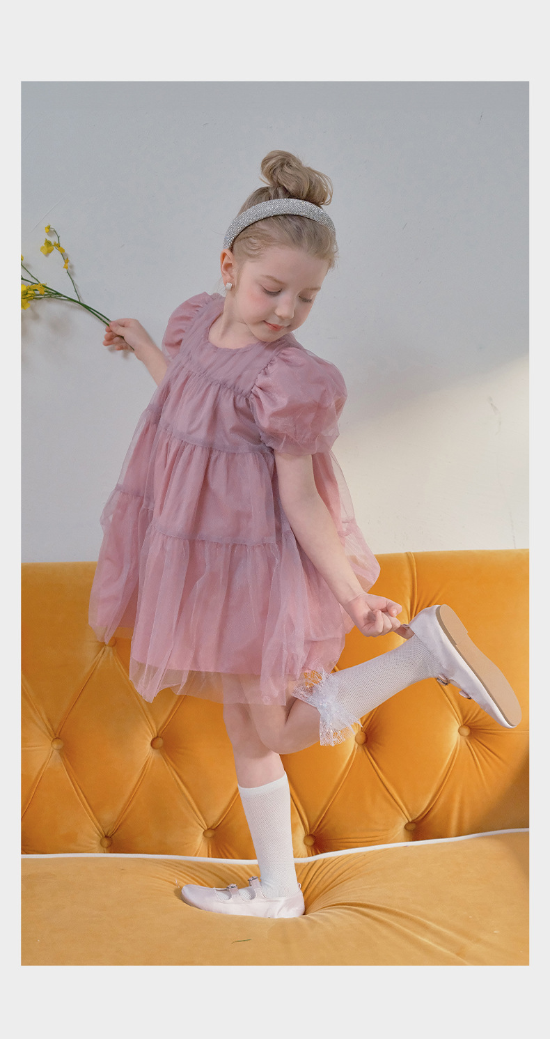 어린이 양말 봄과 여름 얇은 클래스 A Combed Cotton 아기의 메쉬 스타킹 소녀 밝은 활 중간 길이의 스타킹스토어 가기
