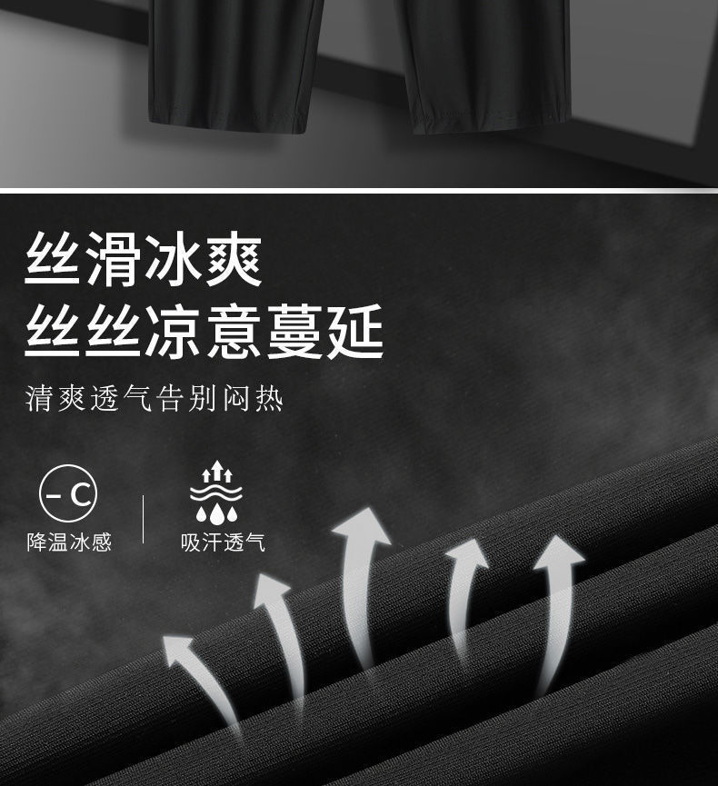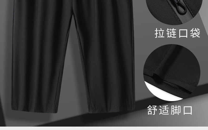남성용 아이스 실크 캐주얼 팬츠 여름 얇은 고탄력 속건 통기성 7부 팬츠 반바지 스포츠 팬츠 통기성 속건