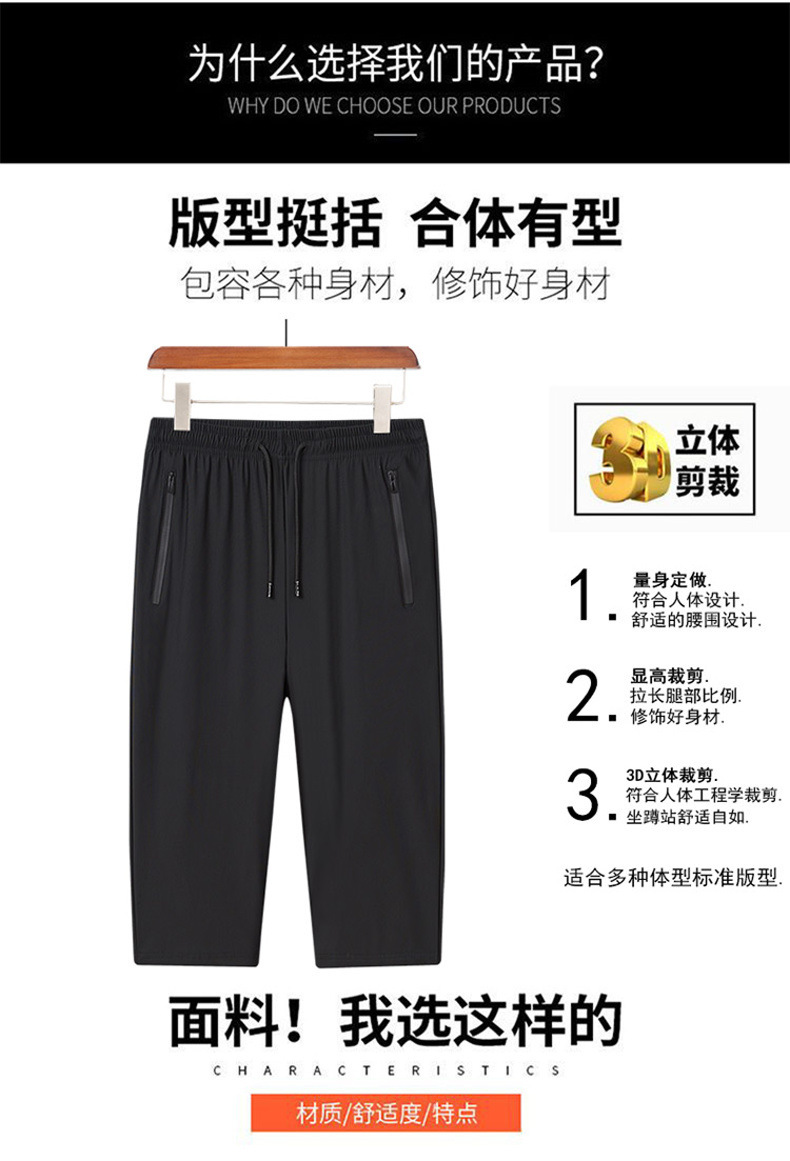 남성용 아이스 실크 캐주얼 팬츠 여름 얇은 고탄력 속건 통기성 7부 팬츠 반바지 스포츠 팬츠 통기성 속건스토어 가기