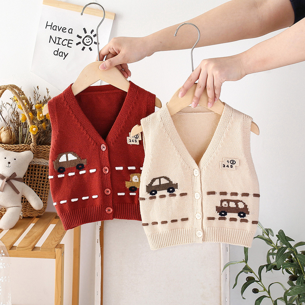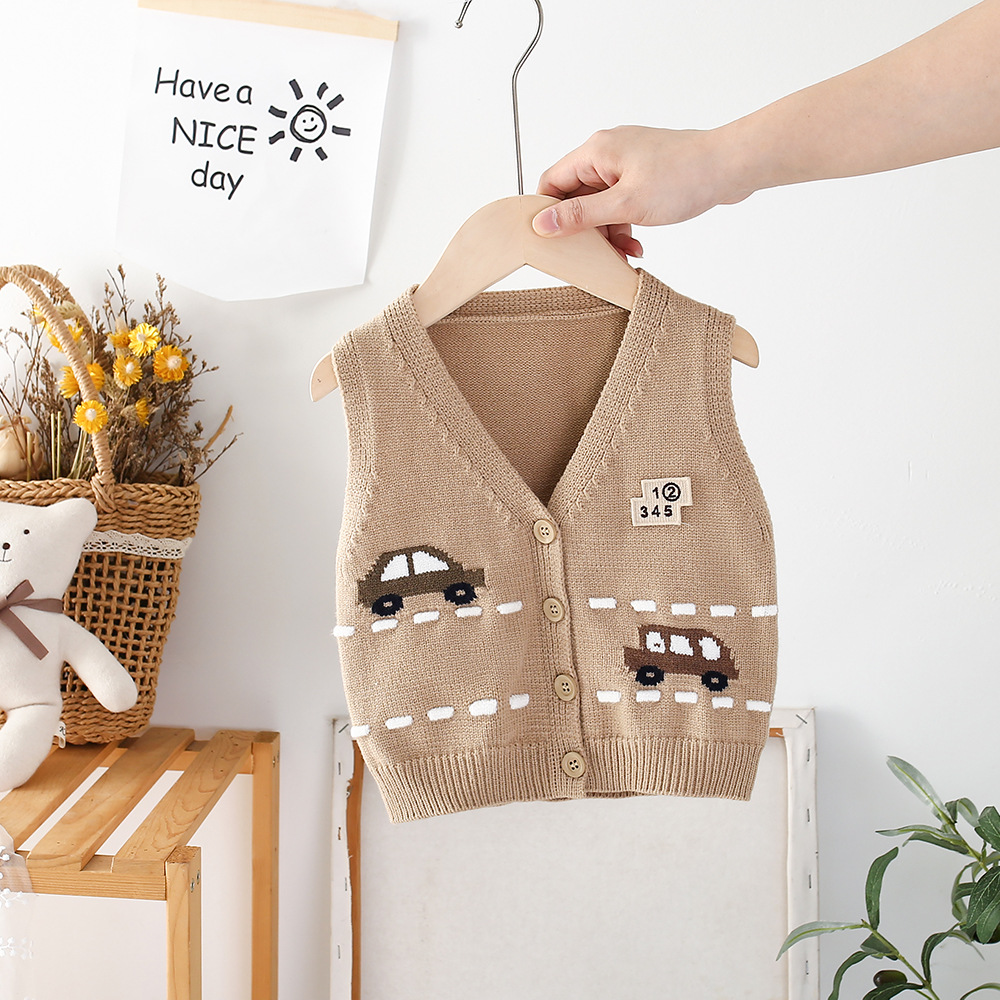 소년과 소녀 니트 카디건 조끼 봄 겉옷 아기 만화 스웨터 가을 v 넥 아기 모직 조끼 조끼스토어 가기