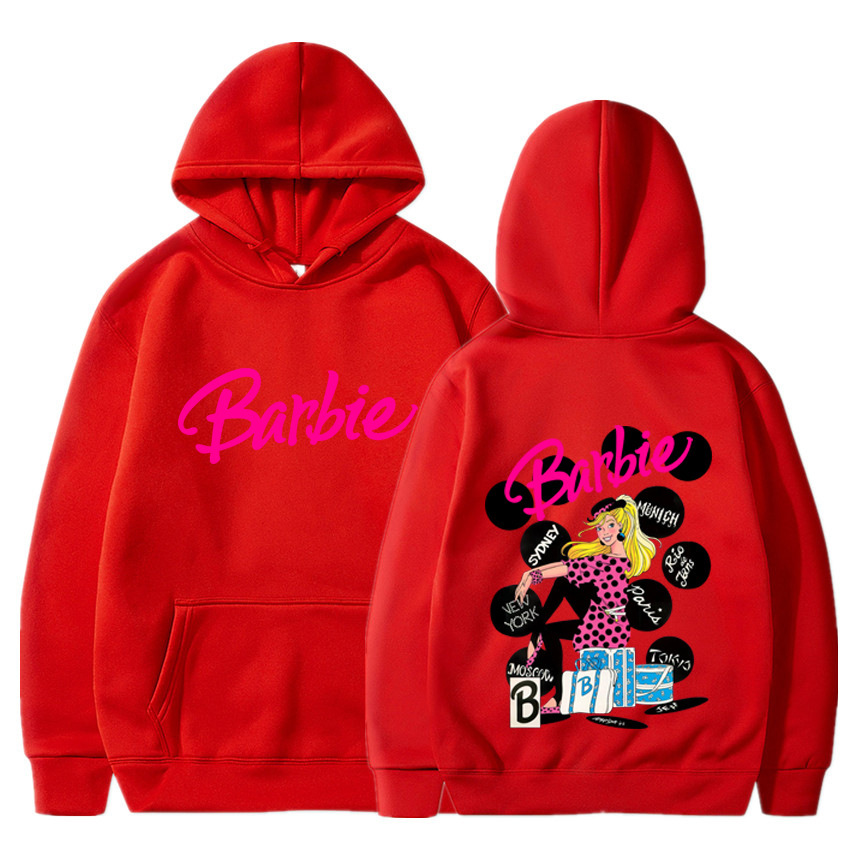 바비 바비 대외 무역 여성 양털 스웨터 일반 편지 인쇄 캥거루 포켓 드로스트링 인쇄 후드스토어 가기