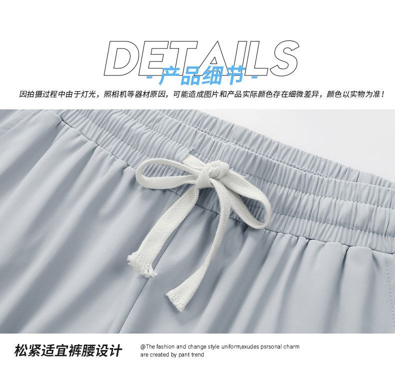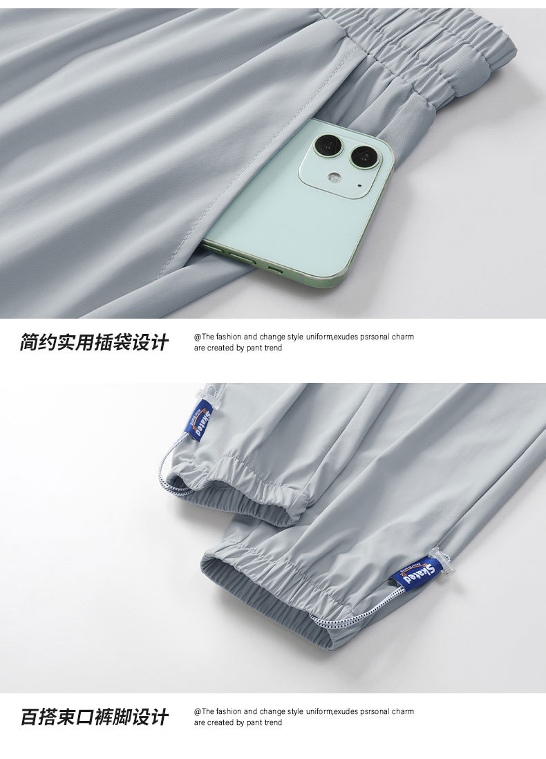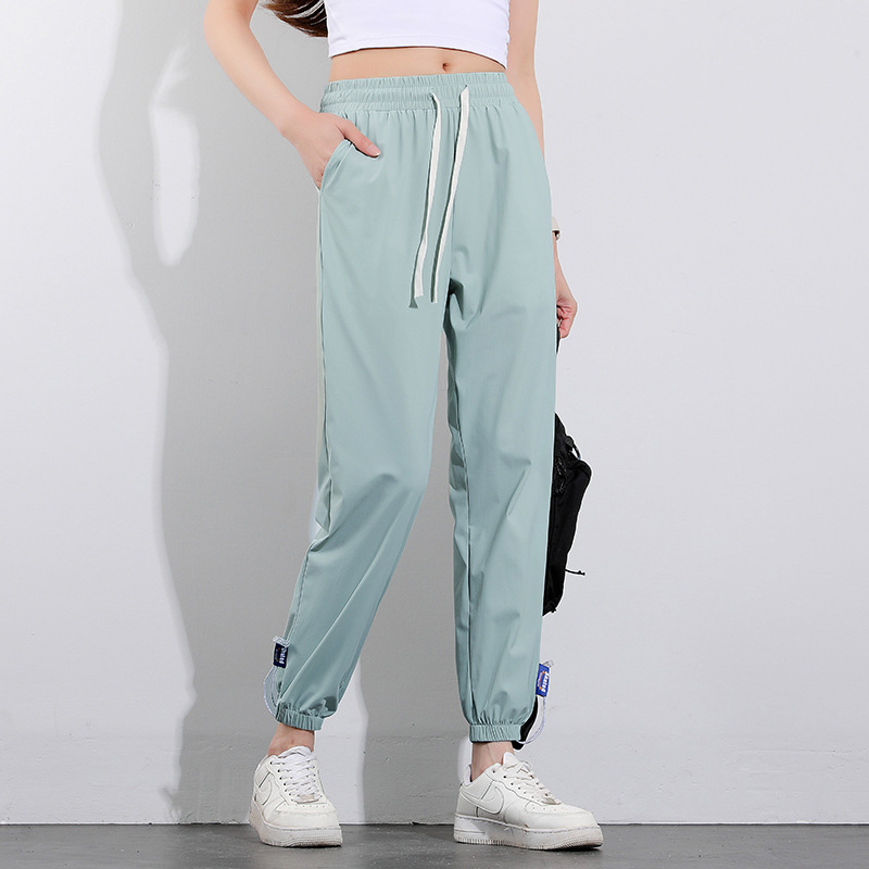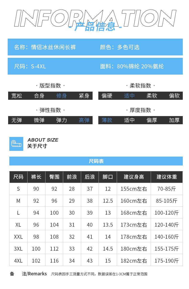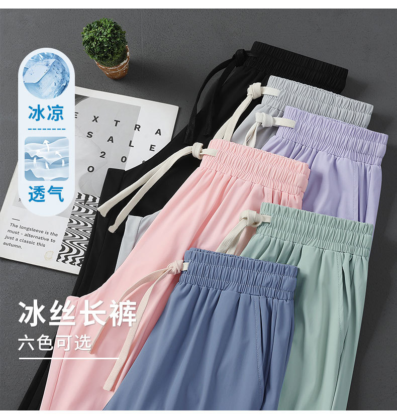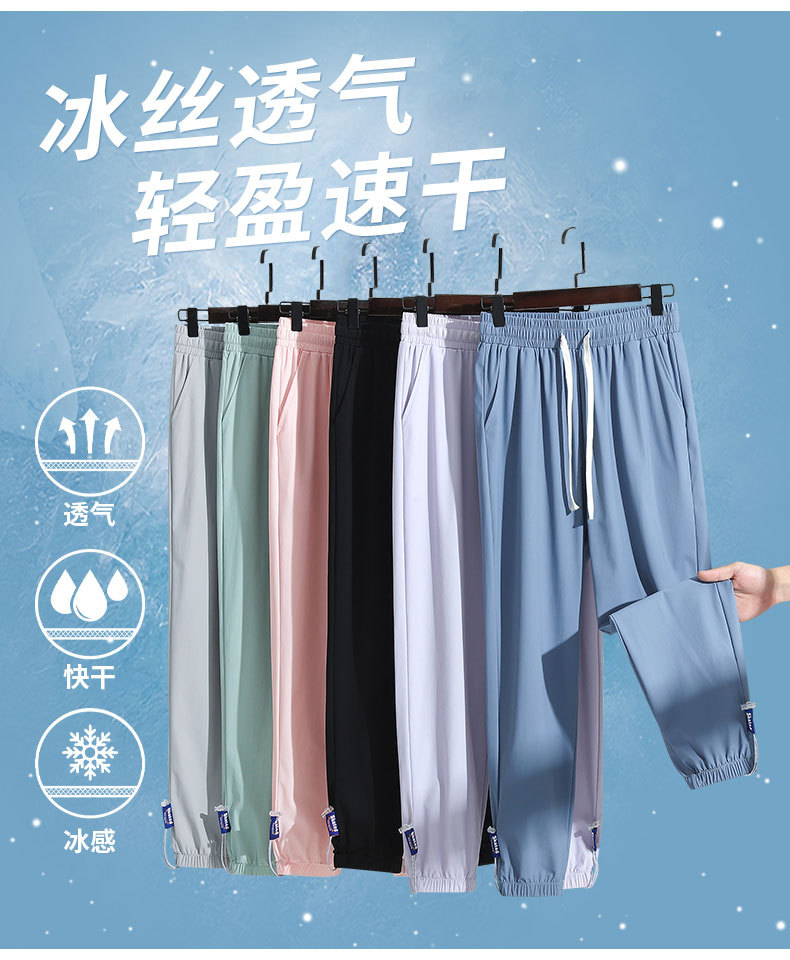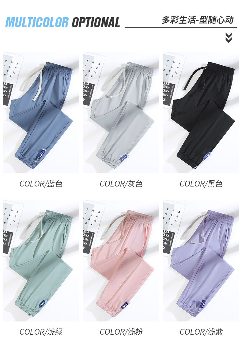 여름 커플의 아이스 실크 바지 얇은 스포츠 캐주얼 바지 남자 9 점 빠른 건조 스트레치 통기성 여성의 트레이드리스 바지