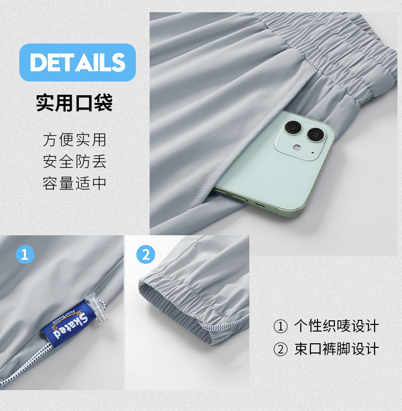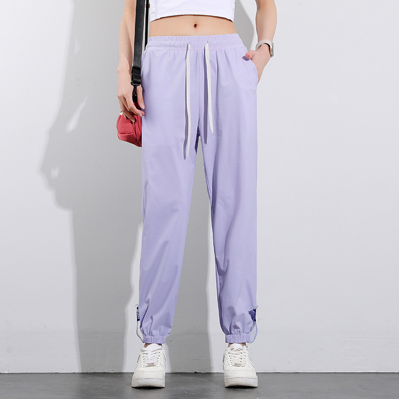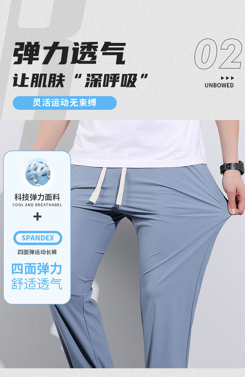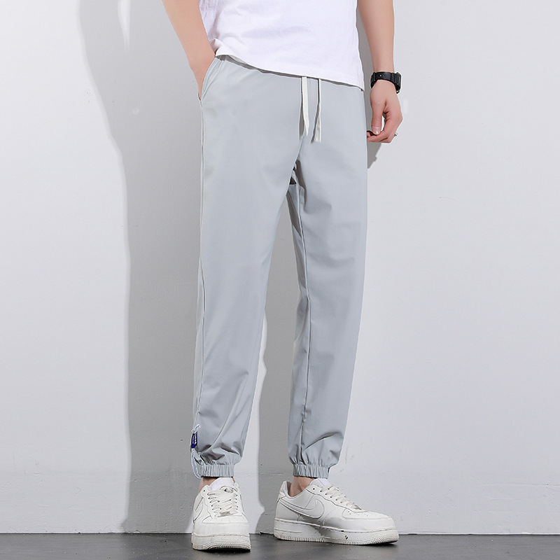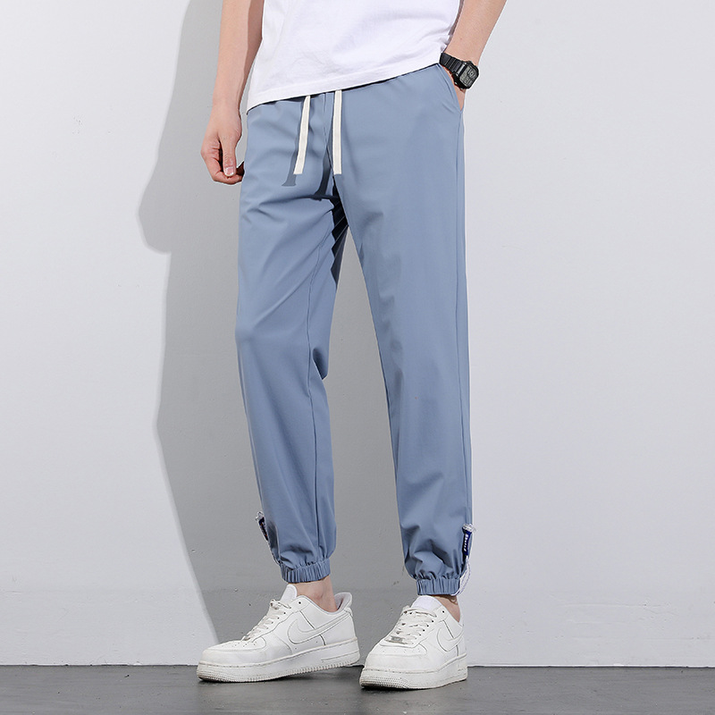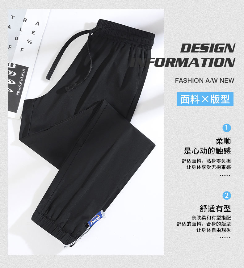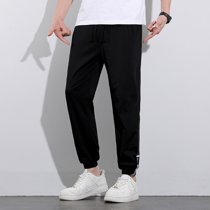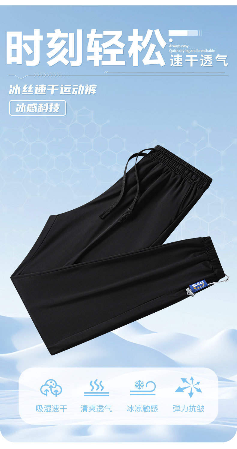 여름 커플의 아이스 실크 바지 얇은 스포츠 캐주얼 바지 남자 9 점 빠른 건조 스트레치 통기성 여성의 트레이드리스 바지