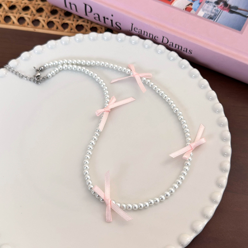 발레 소녀 리본 활 목걸이 달콤한 하이 엔드 라이트 럭셔리 스웨터 체인 패션 간단한 봄 및 여름 액세서리스토어 가기