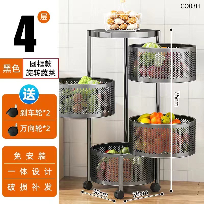 회전식 주방 수납 선반, 설치가 필요 없는 바닥에서부터 바닥까지의 다층 야채 선반, 가정용 다기능 과일 및 스낵 선반스토어 가기