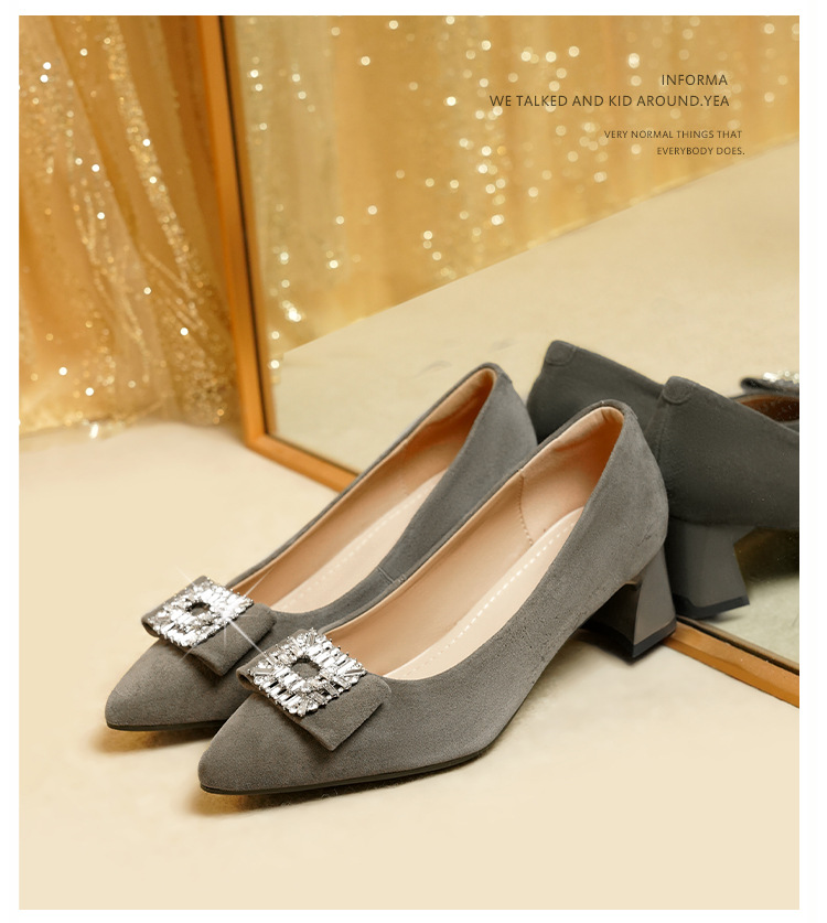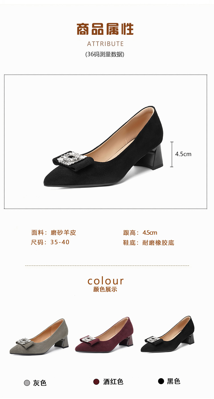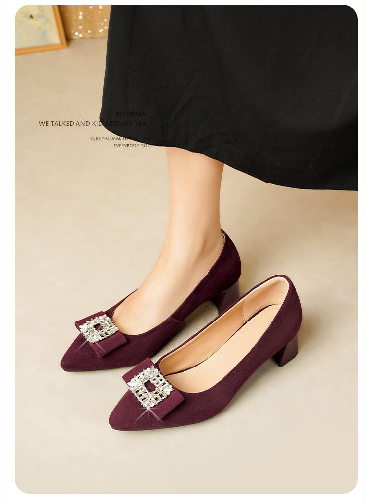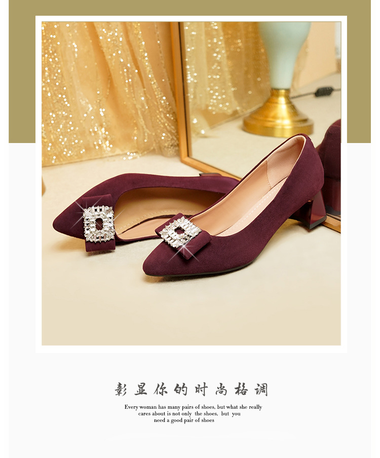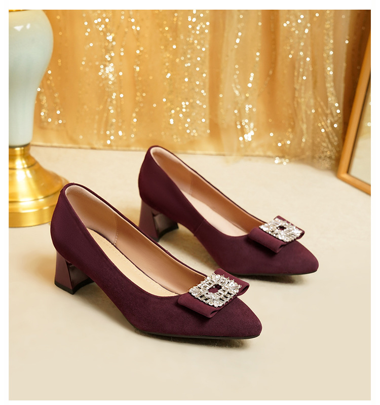 웨딩 여성 신발 버건디 우수한 양가죽 두꺼운 힐 뾰족한 라인스톤 두꺼운 힐 얕은 입 신발 여성용 웨딩 신발스토어 가기