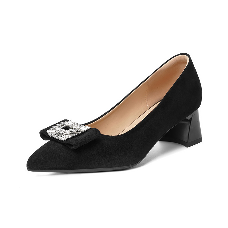 웨딩 여성 신발 버건디 우수한 양가죽 두꺼운 힐 뾰족한 라인스톤 두꺼운 힐 얕은 입 신발 여성용 웨딩 신발