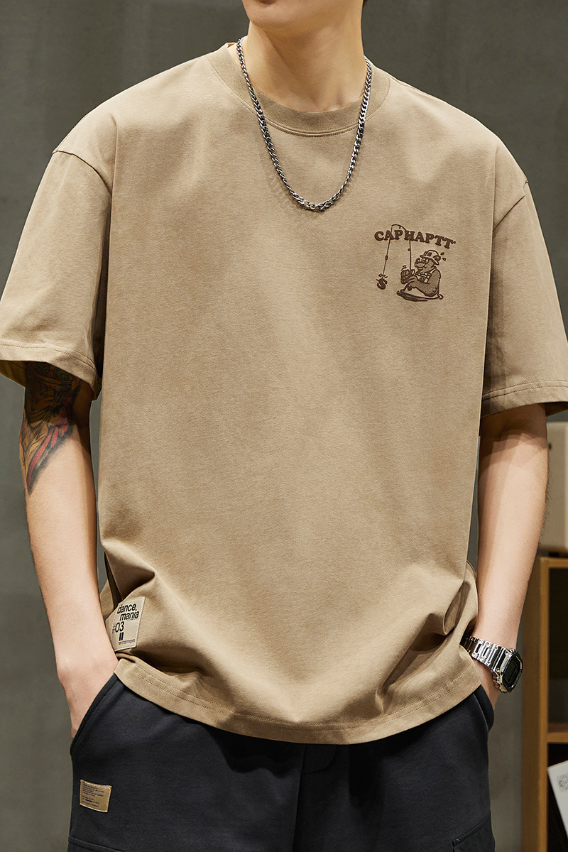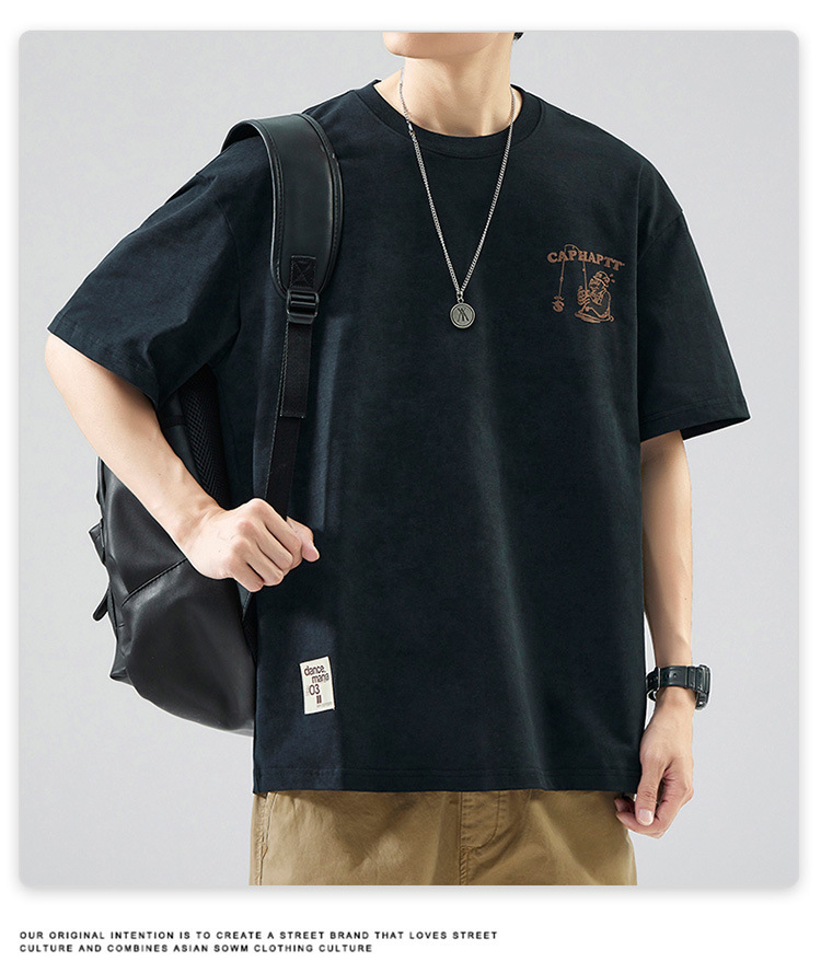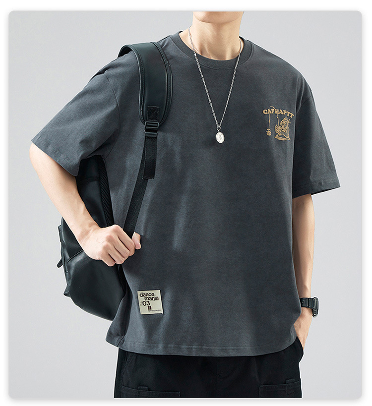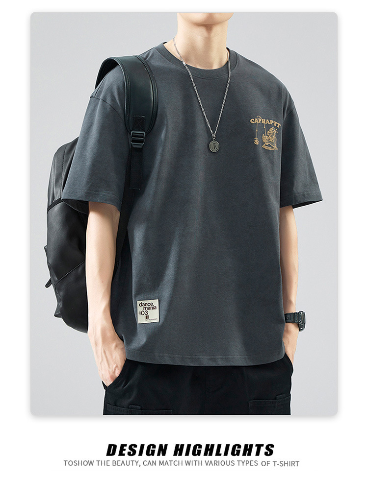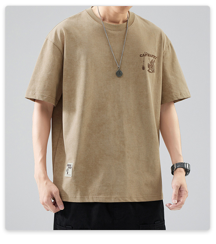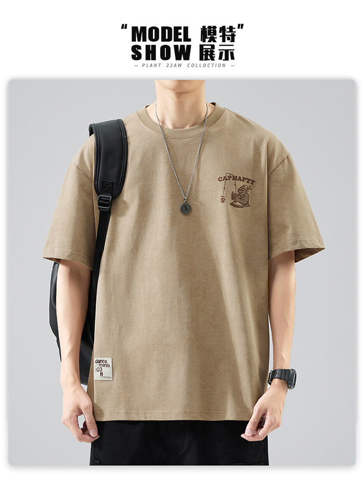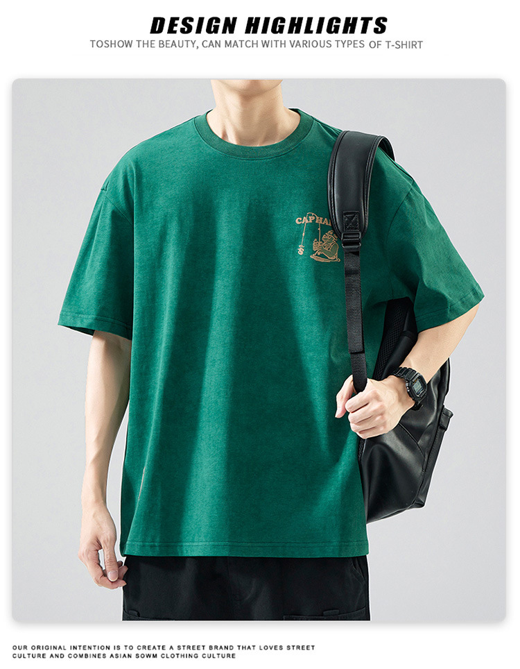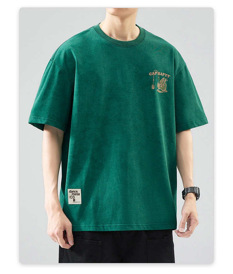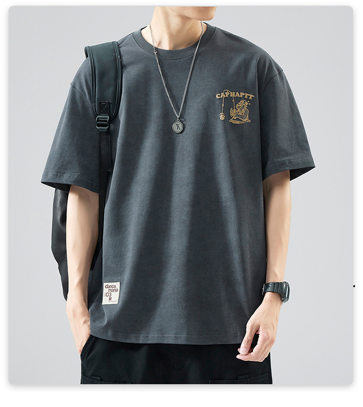 무거운 반팔 티셔츠 남성용 느슨한 대형 패셔너블 브랜드 여름 2024 새로운 스타일 의류 남성용 퓨어 코튼 남성용 티셔츠스토어 가기