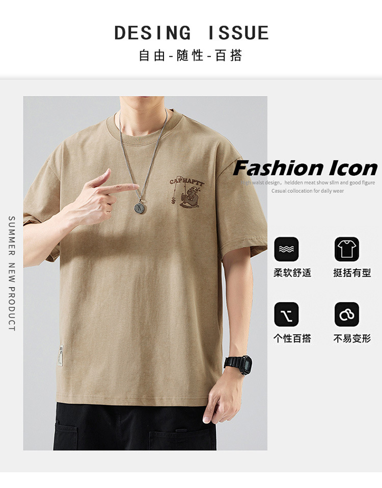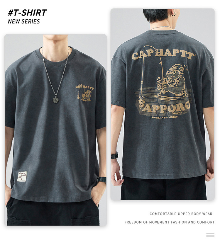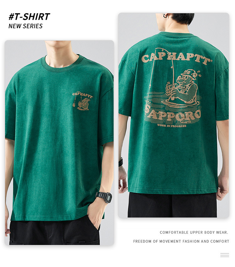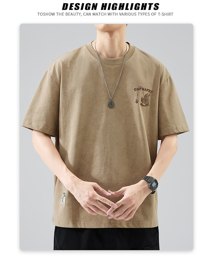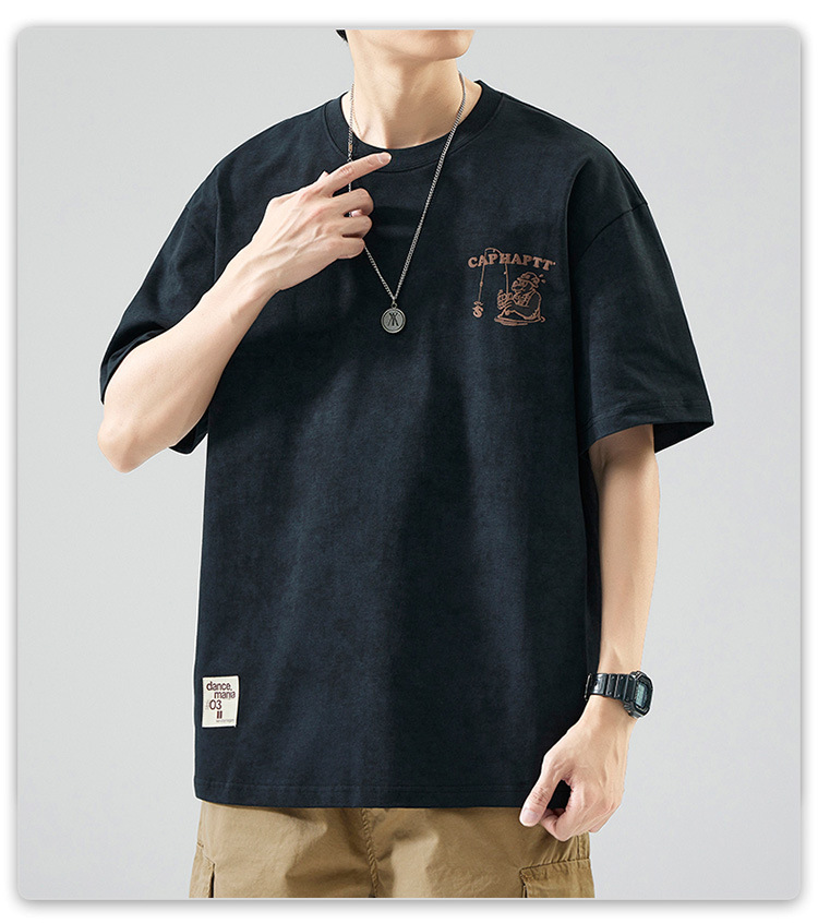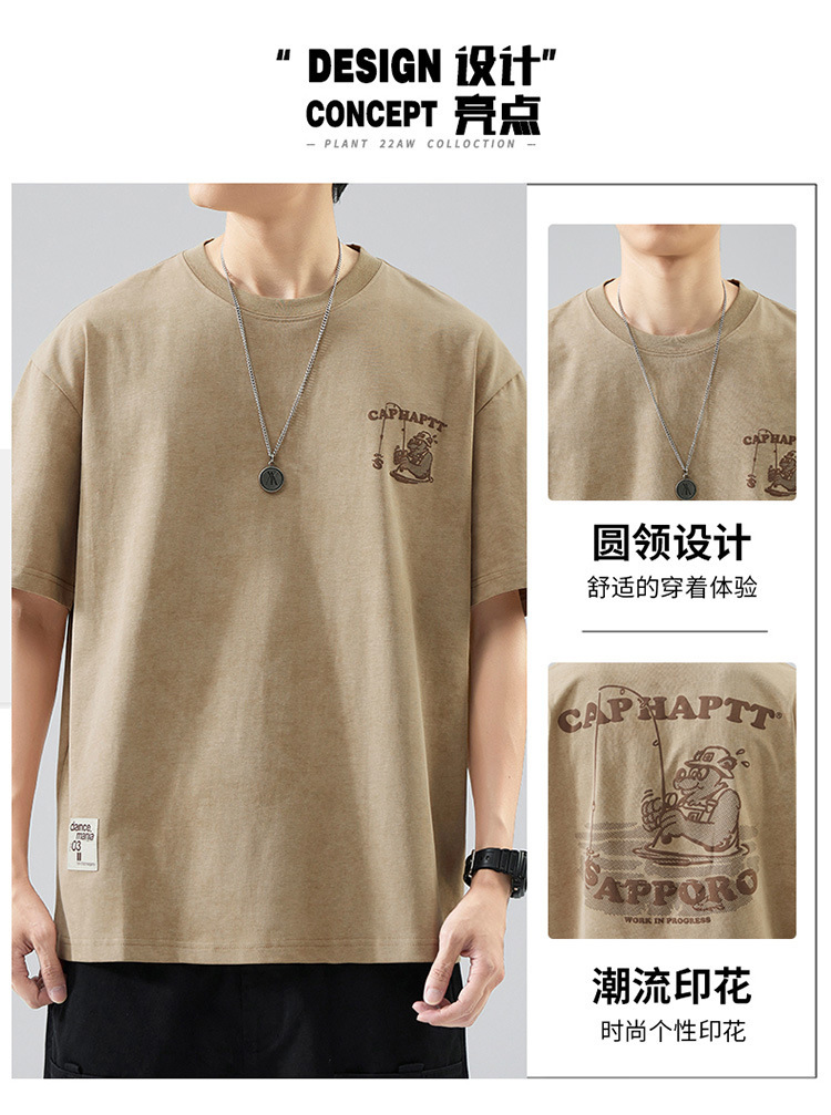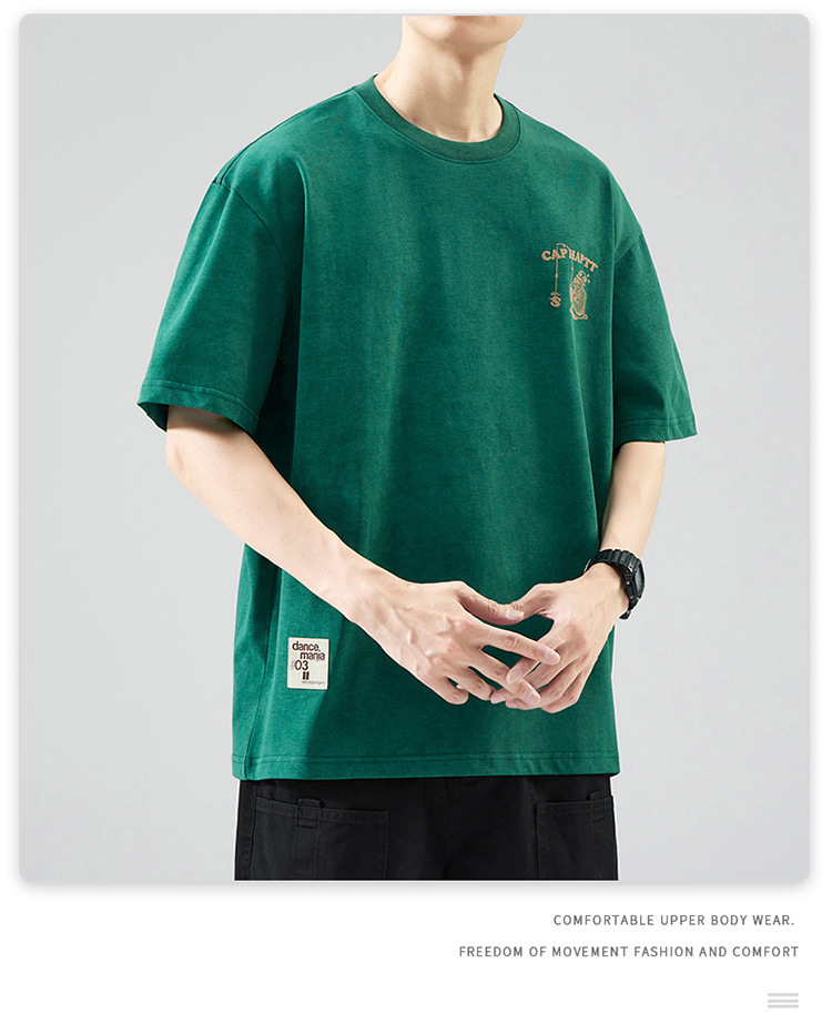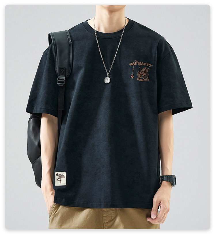 무거운 반팔 티셔츠 남성용 느슨한 대형 패셔너블 브랜드 여름 2024 새로운 스타일 의류 남성용 퓨어 코튼 남성용 티셔츠스토어 가기
