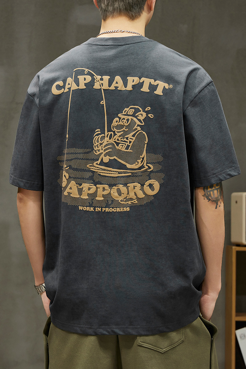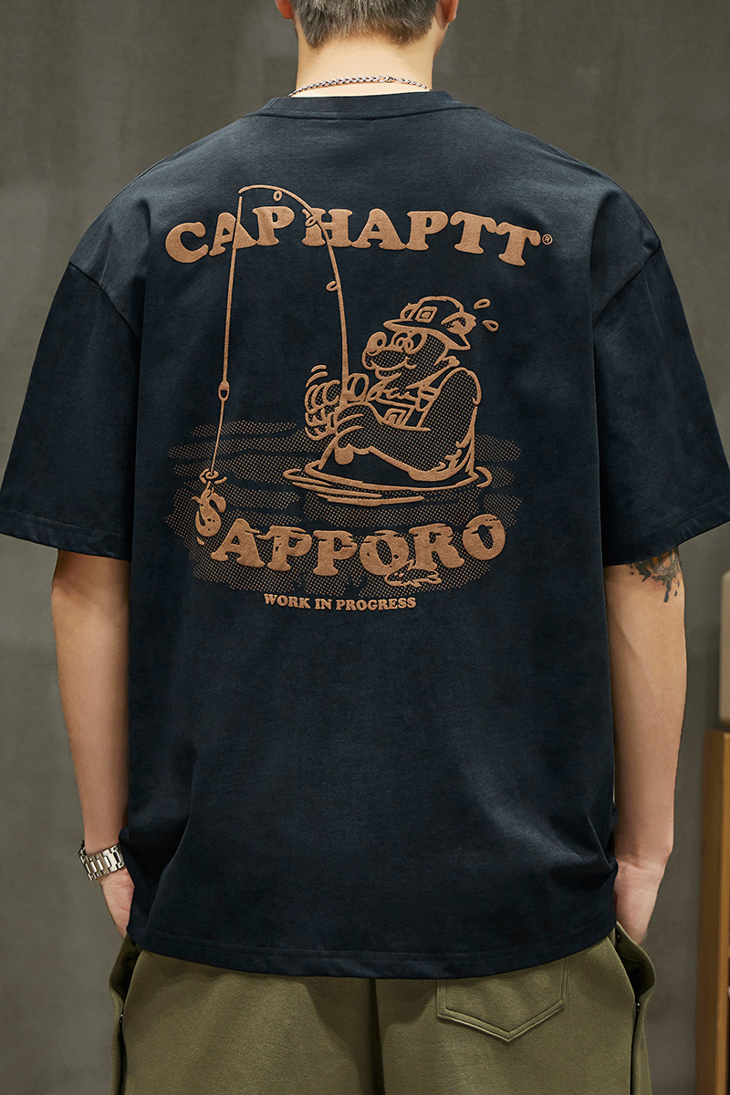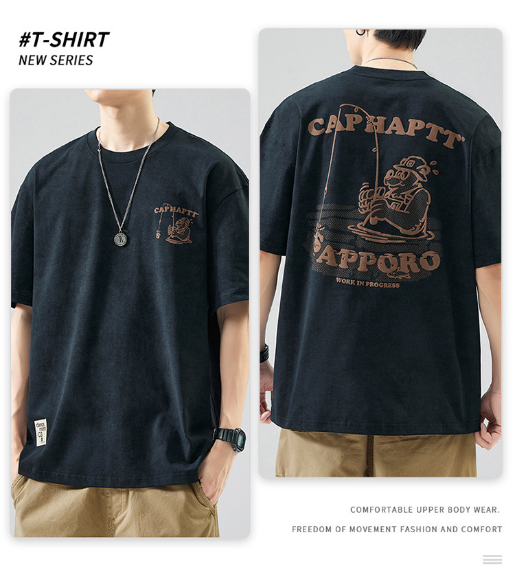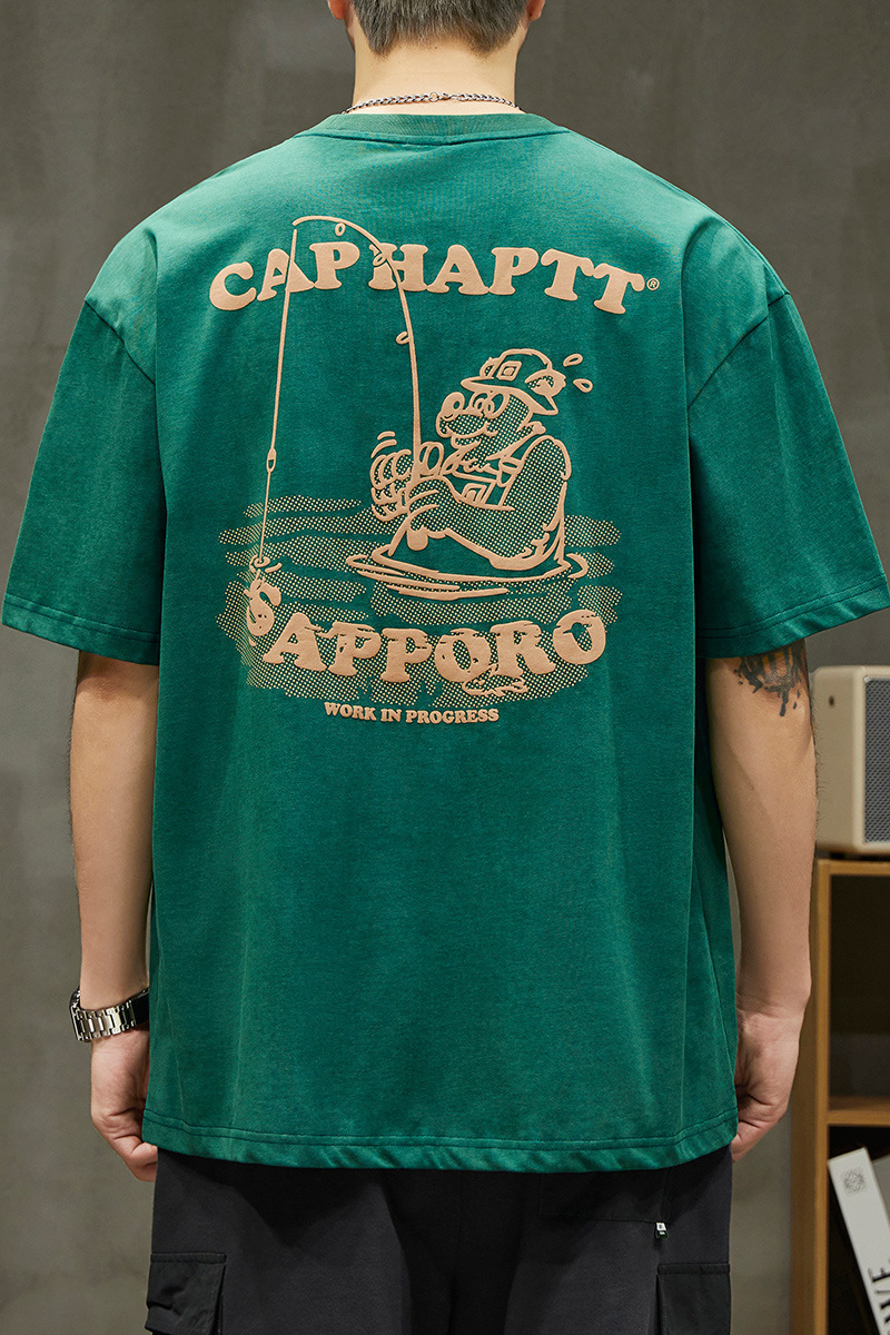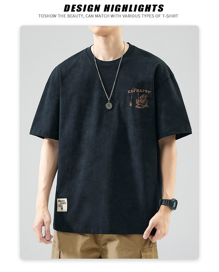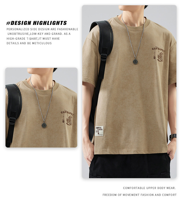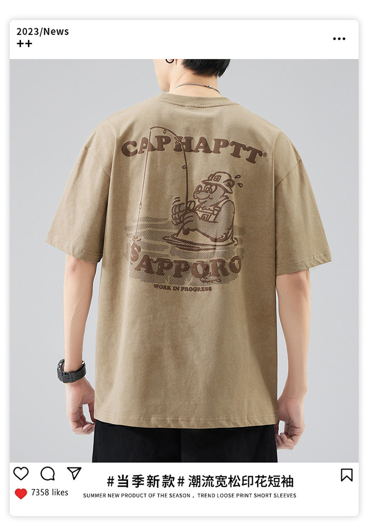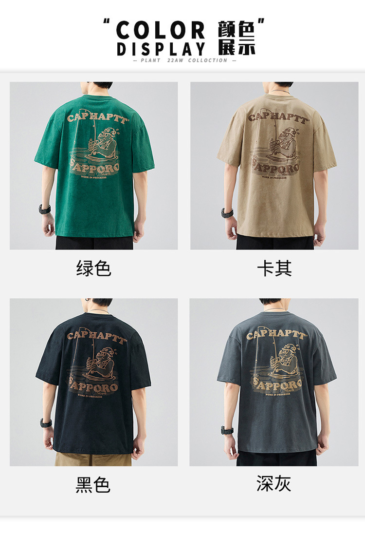 무거운 반팔 티셔츠 남성용 느슨한 대형 패셔너블 브랜드 여름 2024 새로운 스타일 의류 남성용 퓨어 코튼 남성용 티셔츠스토어 가기