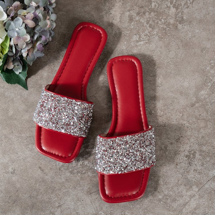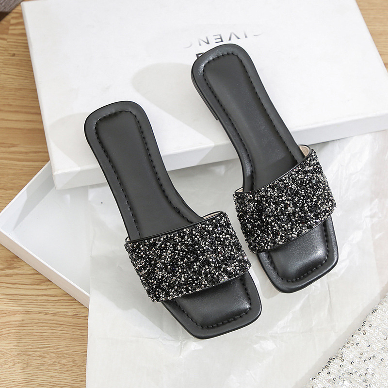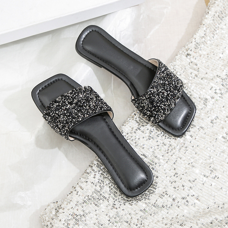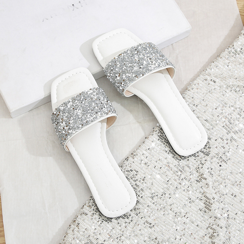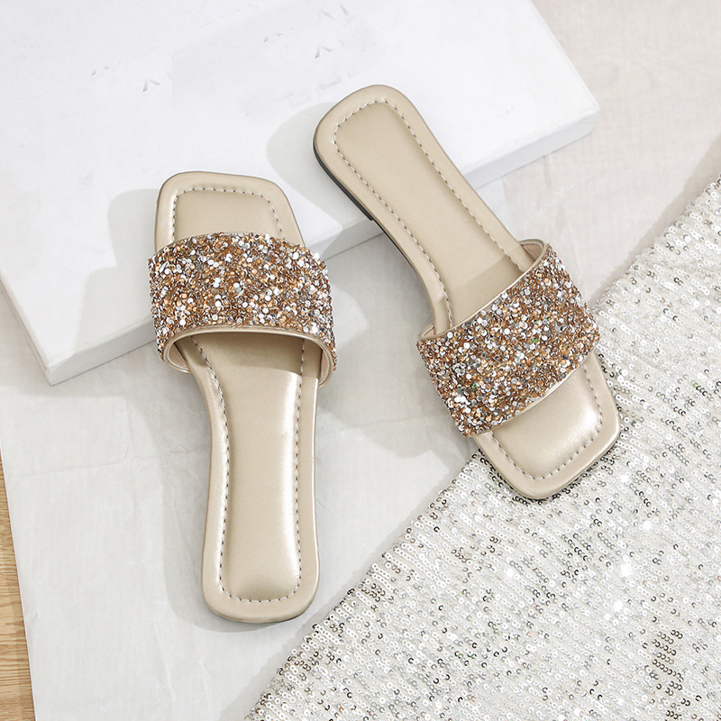 유럽과 미국의 2025년 여름 신상 글리터 스팽글 플랫 바닥 부드러운 밑창 편안한 캐주얼 여성 슬리퍼, 대외 무역 대형 사이즈스토어 가기