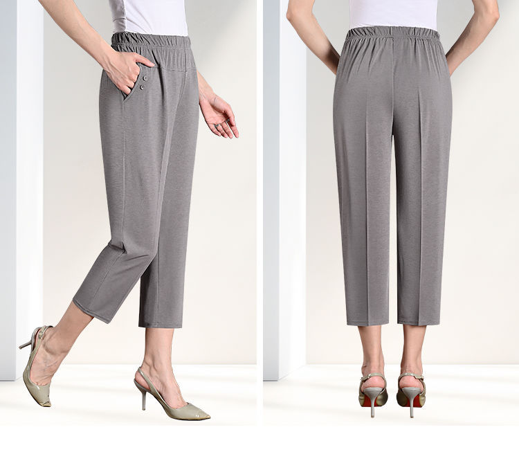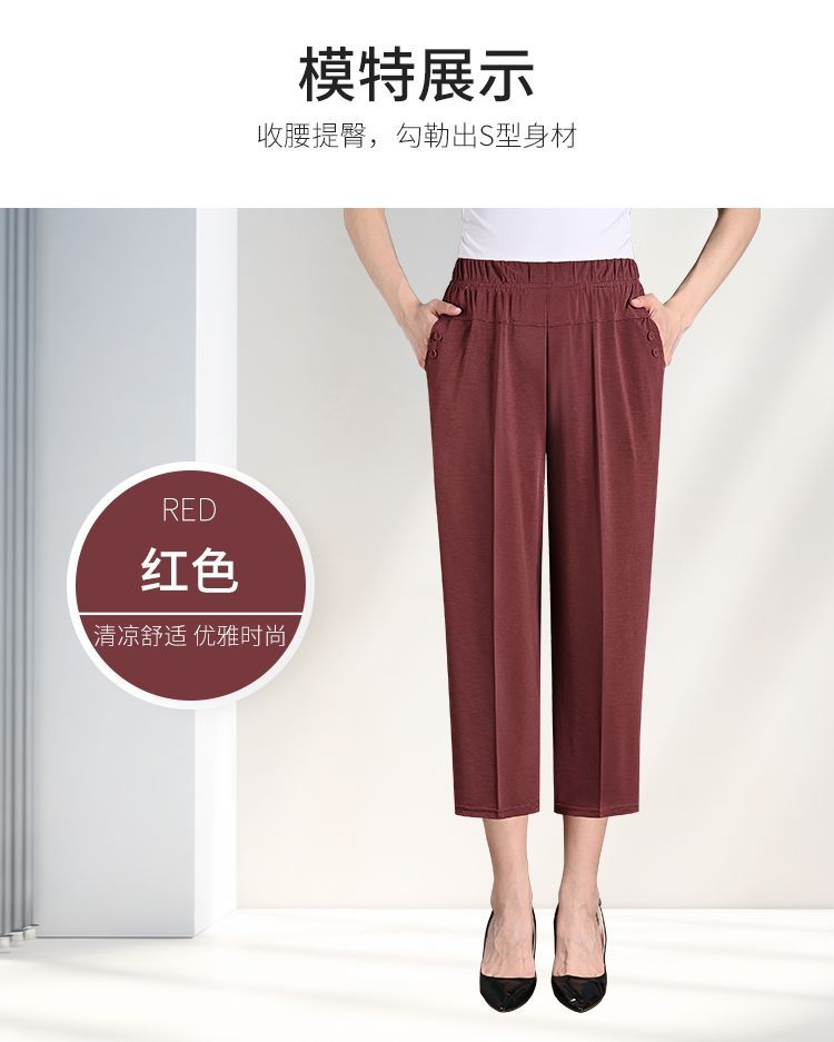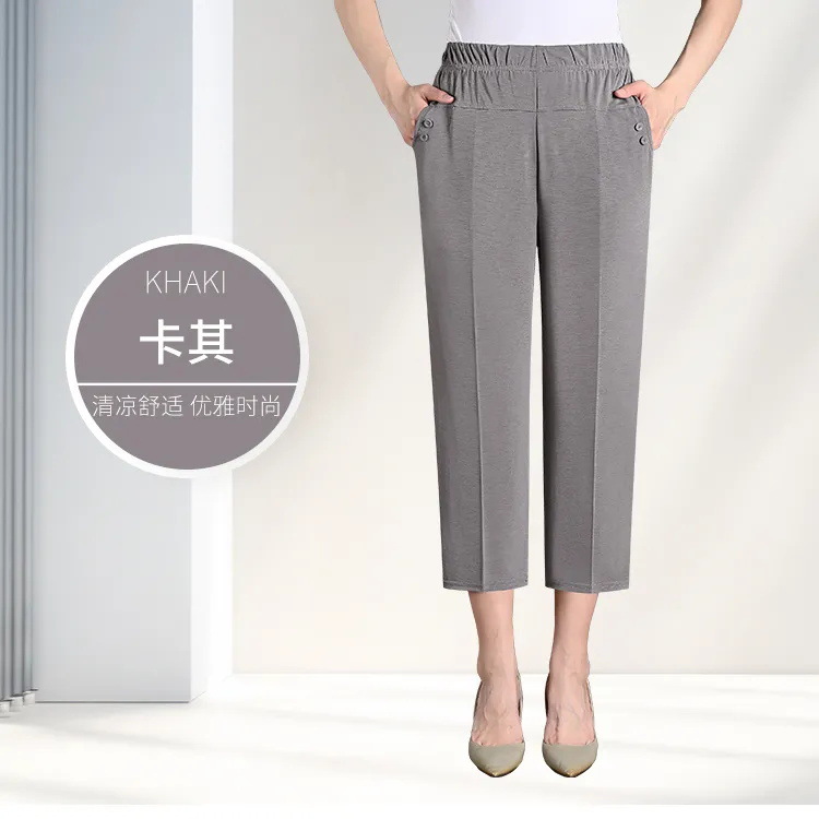 중년 및 노인 여성 바지 아이스 실크 아우터 바지 여름 얇은 어머니와 할머니 느슨한 대형 8 점 스트레이트 바지스토어 가기