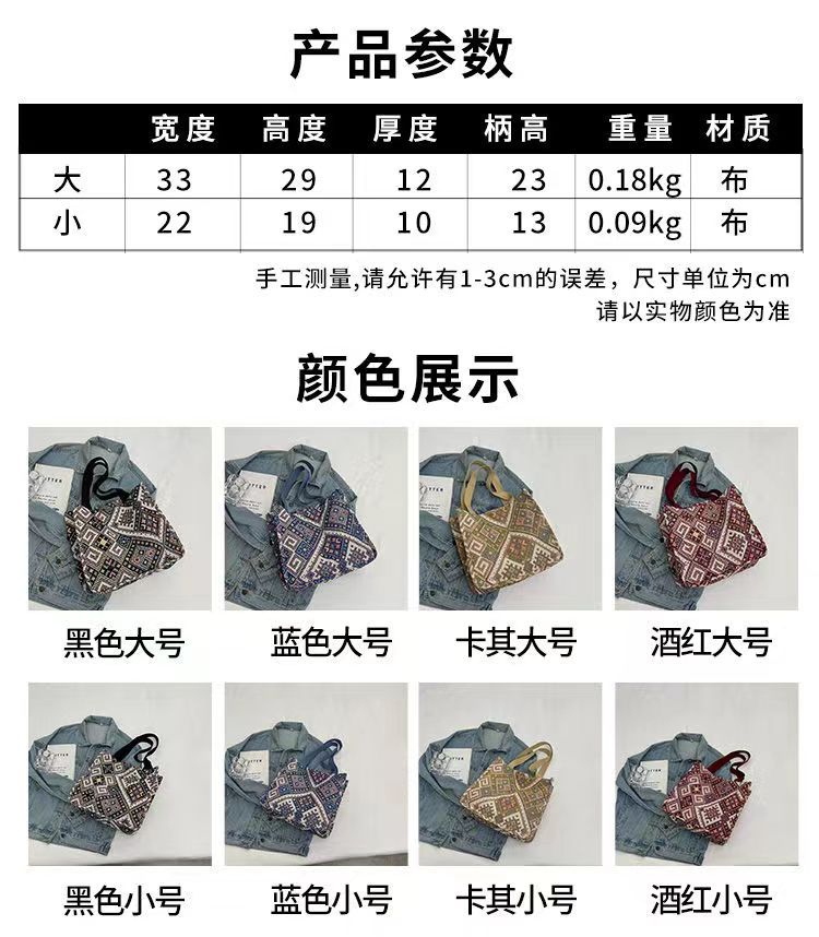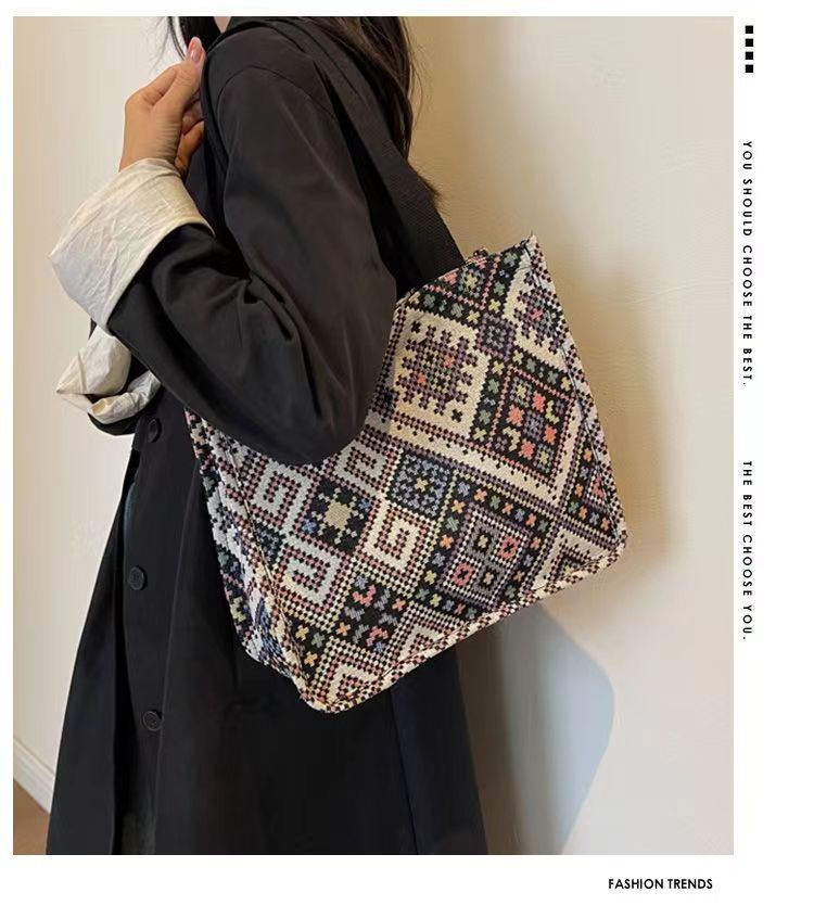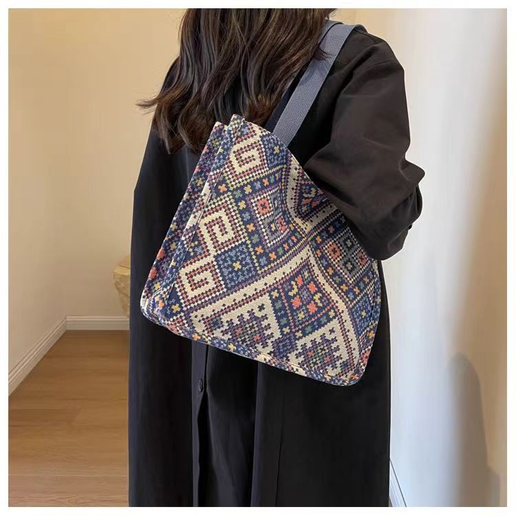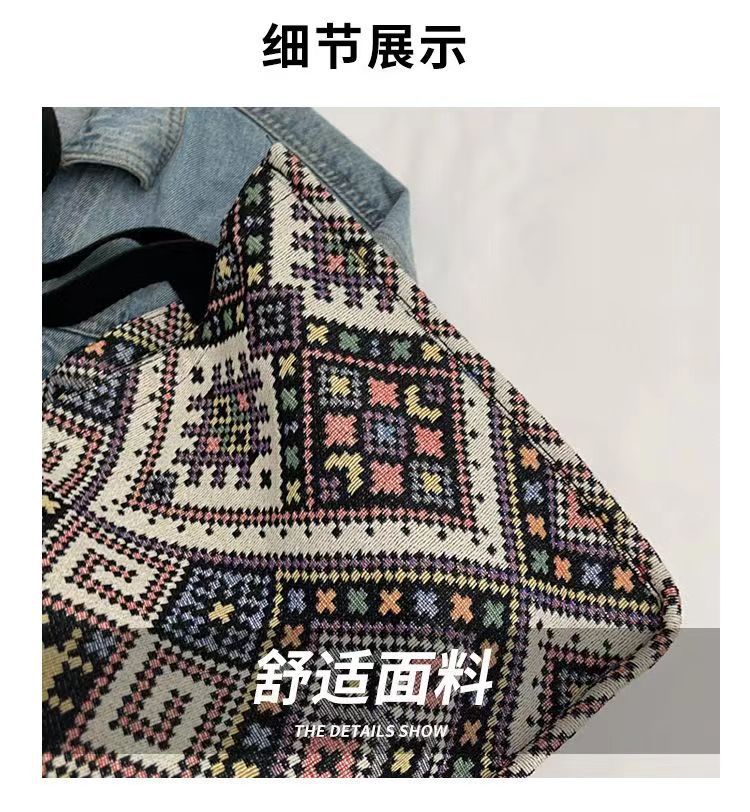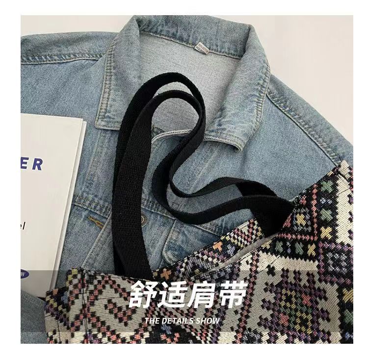 대용량 민족 통근 토트 백 패션 통근 천 가방 대학생 클래스 숄더백