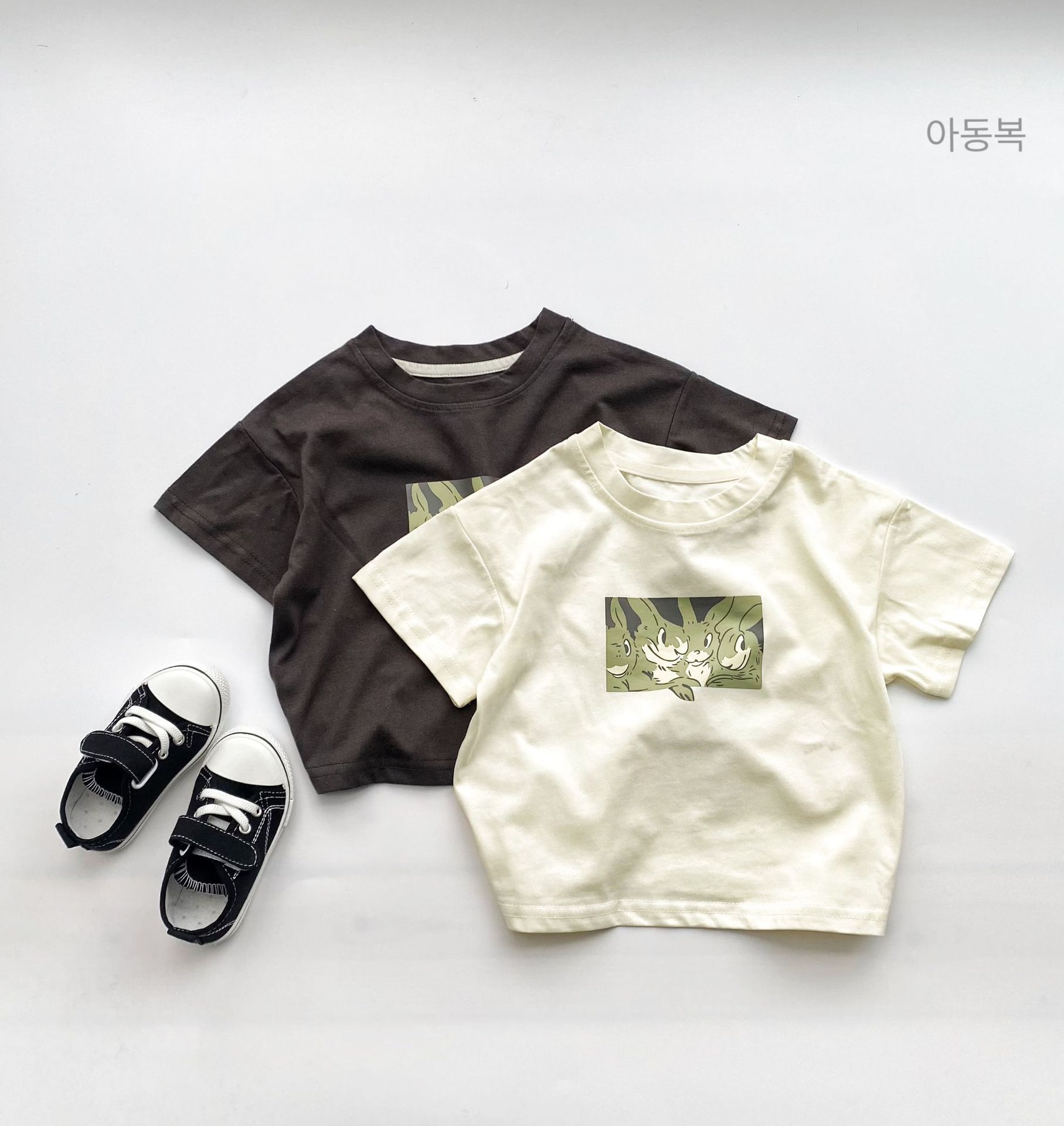 여름 새로운 어린이 티셔츠 소년 소녀 한국 인쇄 만화 면 티셔츠 짧은 소매 소프트베이스 셔츠 탑스토어 가기