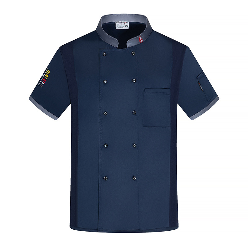 주방 및 매점 남성용 짧은 소매 만두 레스토랑 개인 요리 레스토랑 요리사 옷을위한 여름 얇은 통기성 특수 작업복