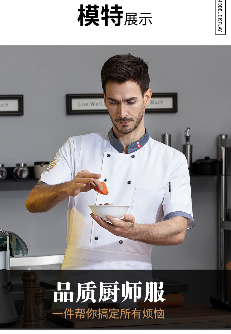 주방 및 매점 남성용 짧은 소매 만두 레스토랑 개인 요리 레스토랑 요리사 옷을위한 여름 얇은 통기성 특수 작업복스토어 가기
