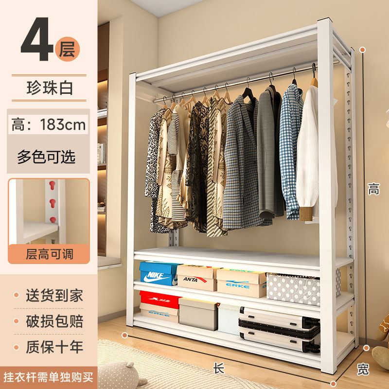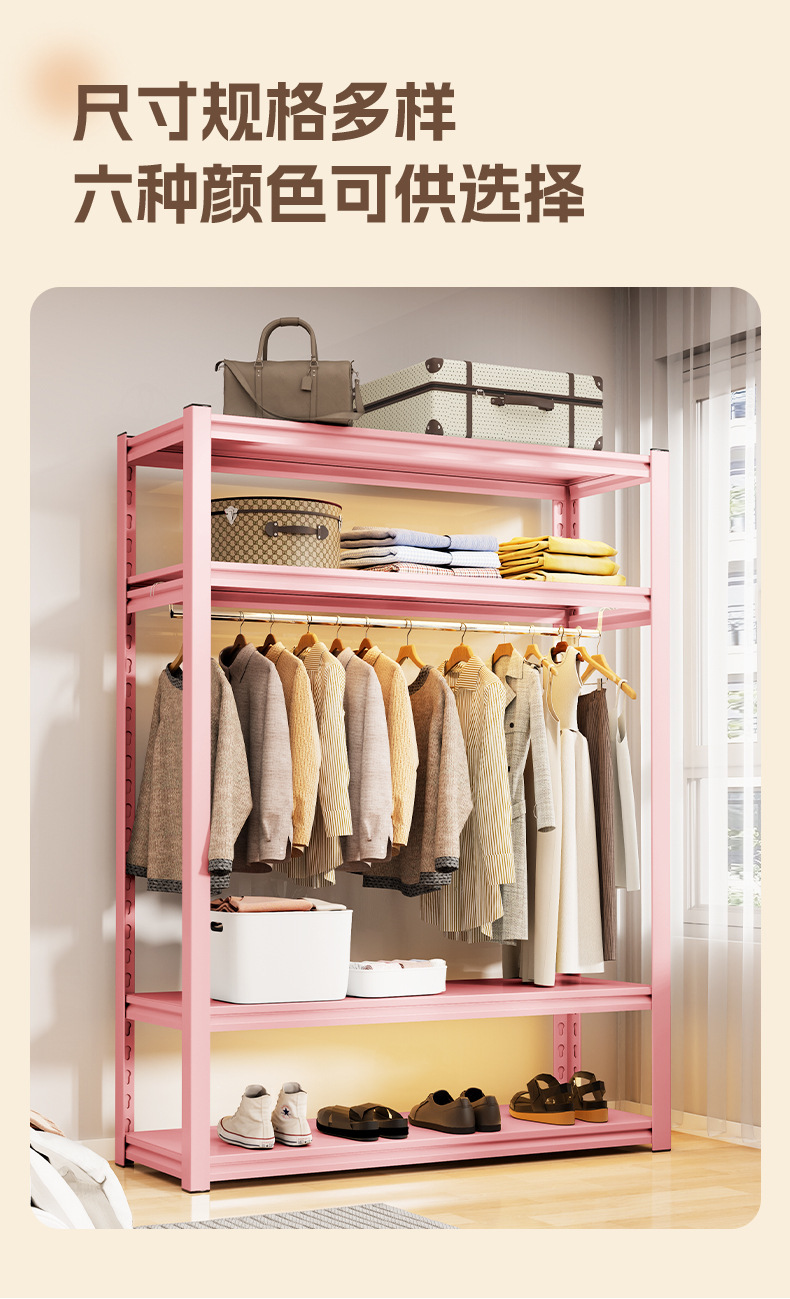 간단한 옷장 임대 방 침실 집 조립 저장 선반 바닥 각도 강철 옷걸이 철 다층 선반