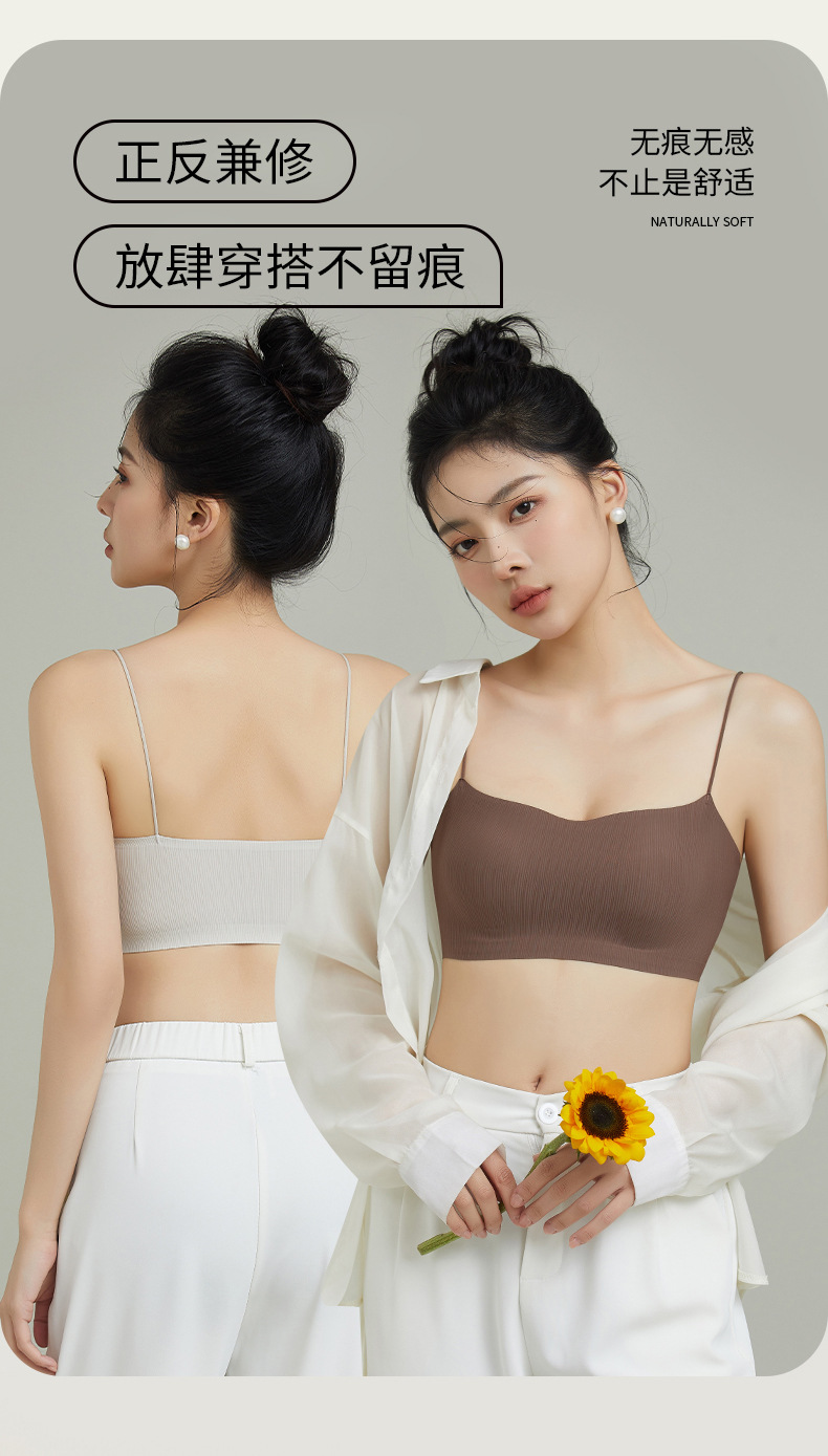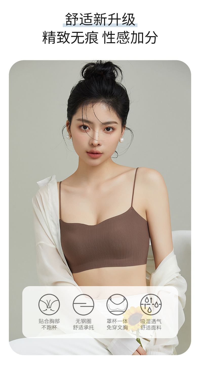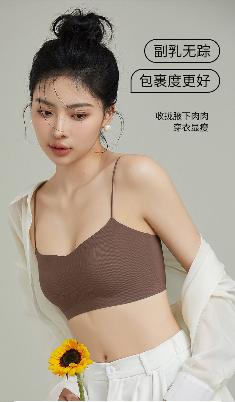 스트랩리스 속옷 여성용 안티 러닝 라이트 2024 새로운 스타일 얇은 어깨 스트랩 슬링 아름다운 백 브래지어 통합 스포츠 조끼 브래지어스토어 가기