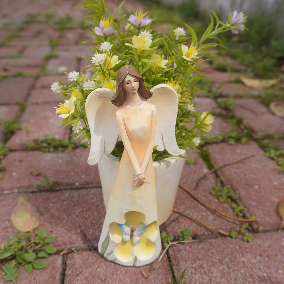 홈 발코니 야외 정원 안뜰 장식을위한 꽃 냄비 동상과 창조적 인 꽃 나비 천사 소녀