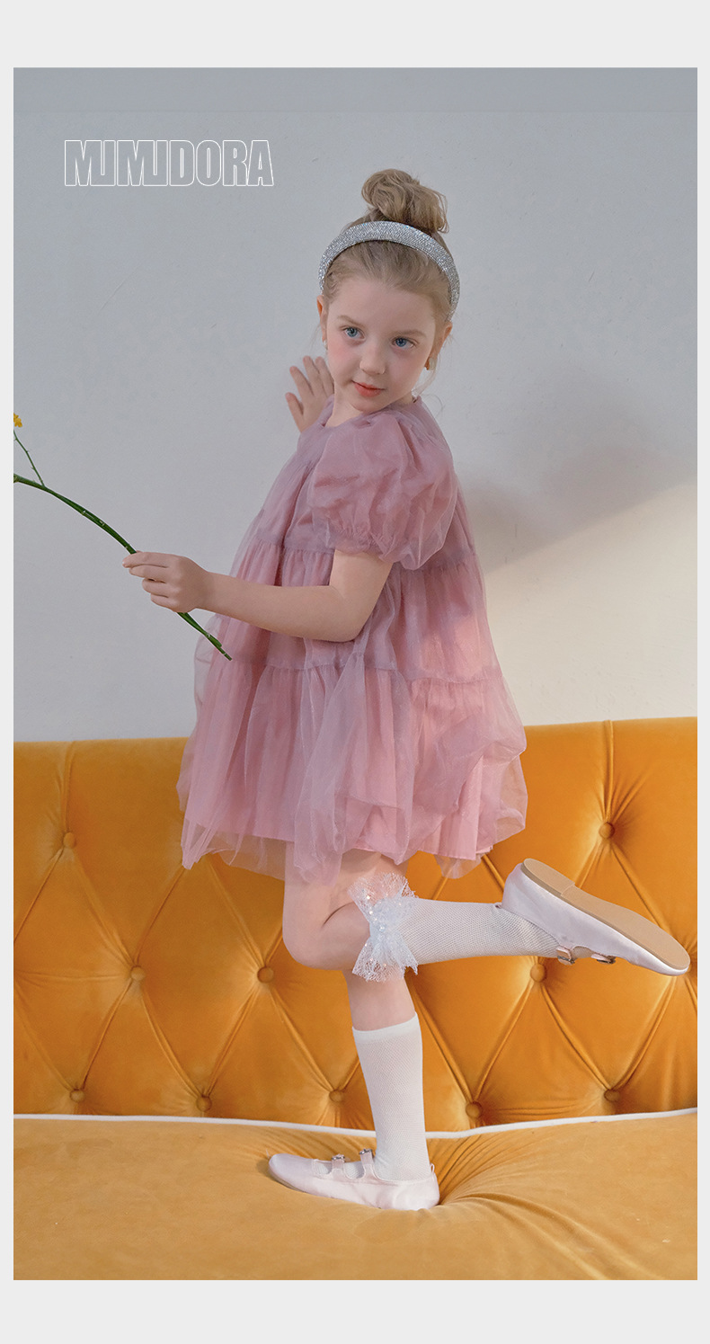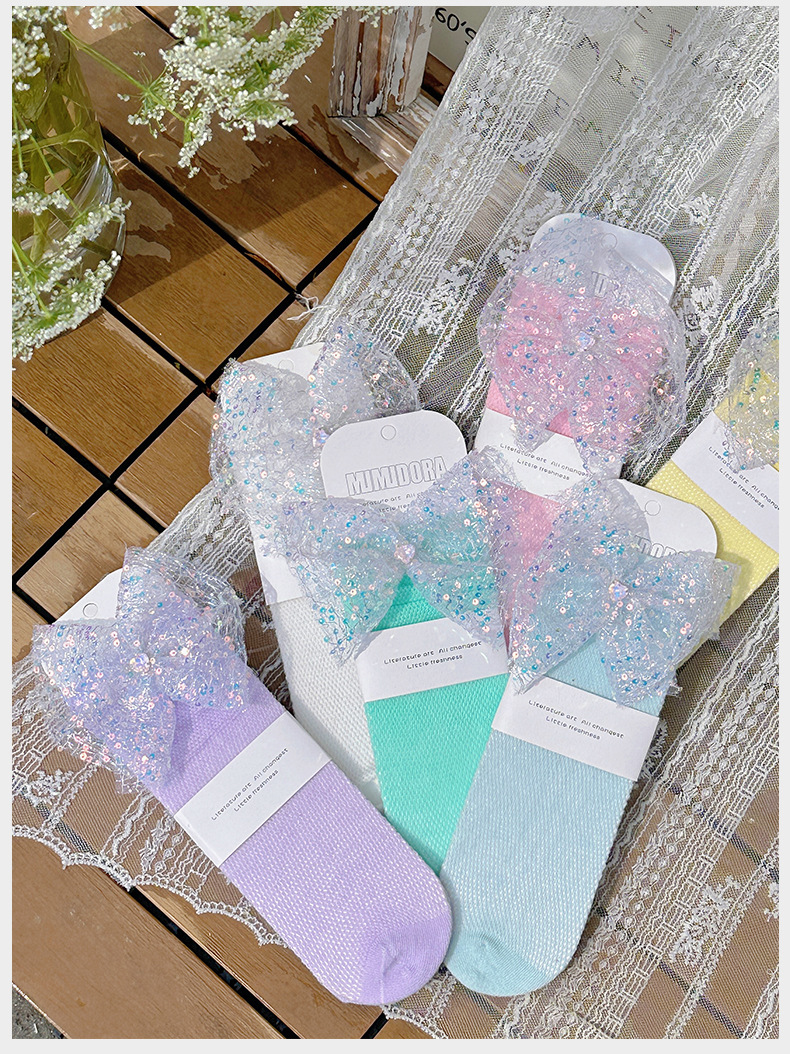 어린이 양말 봄과 여름 얇은 클래스 A Combed Cotton 아기의 메쉬 스타킹 소녀 밝은 활 중간 길이의 스타킹스토어 가기