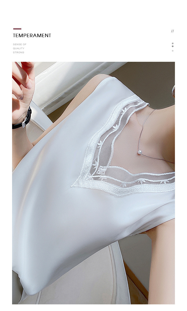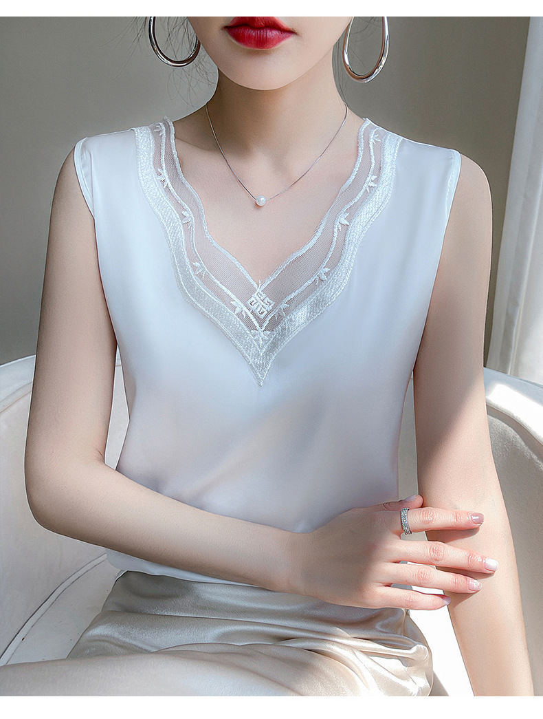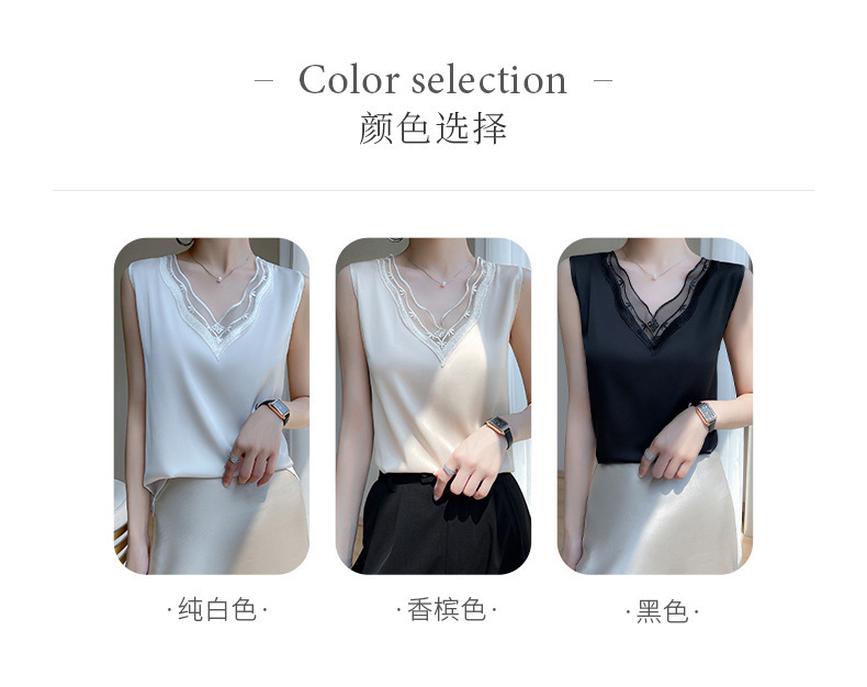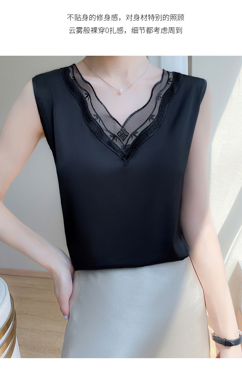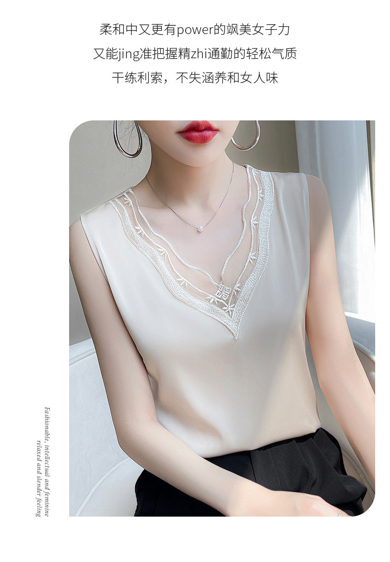 내베이스 V 넥 아세트산 새틴 탑 세트 아름다운 레이스 작은 슬링 여성용 고급 실크 슬링 조끼스토어 가기