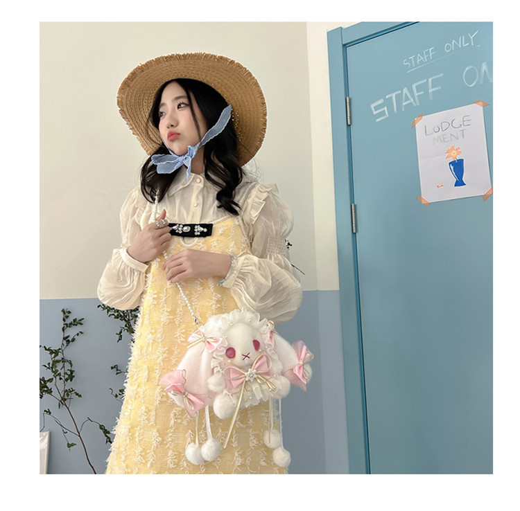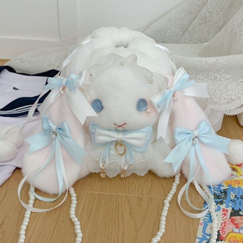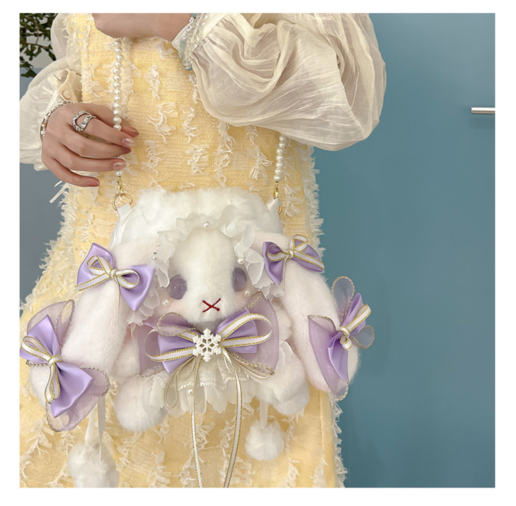 로리 일본 로리타 토끼 가방 2024 새로운 JK 귀여운 소녀 토끼 가방 크로스 바디 백 진주 소프트 소녀 핸드백
