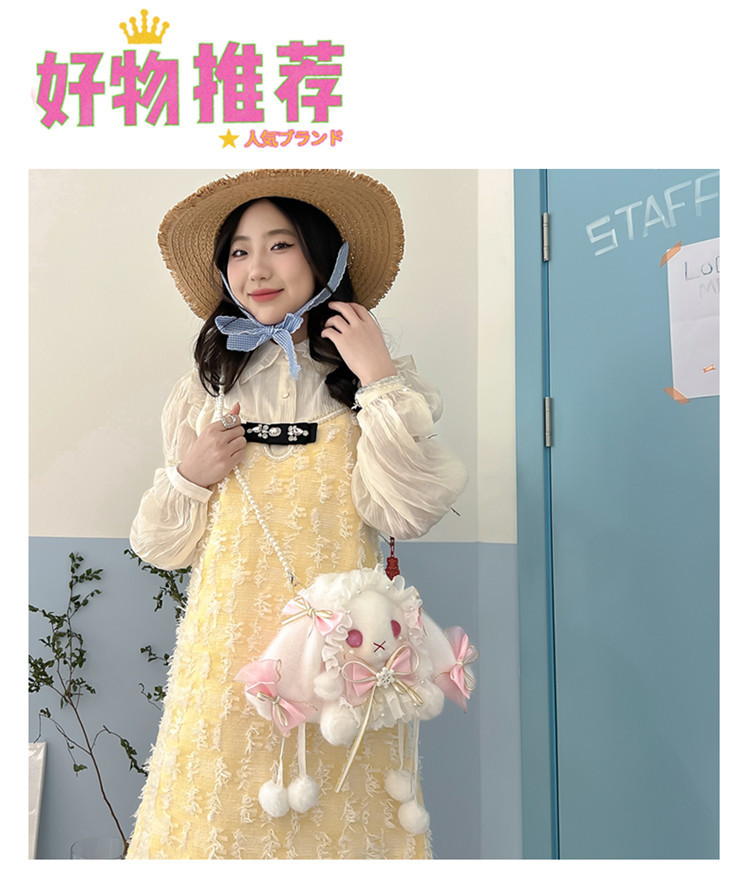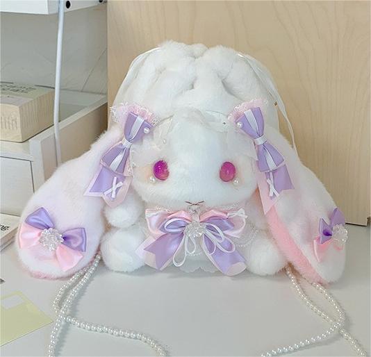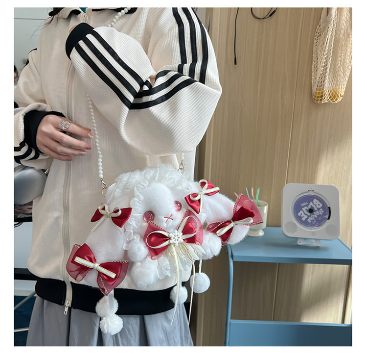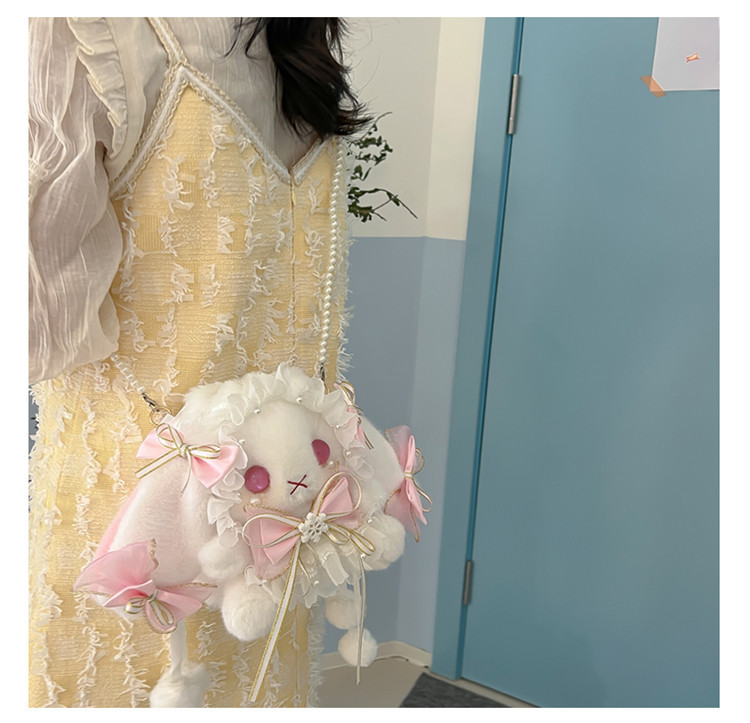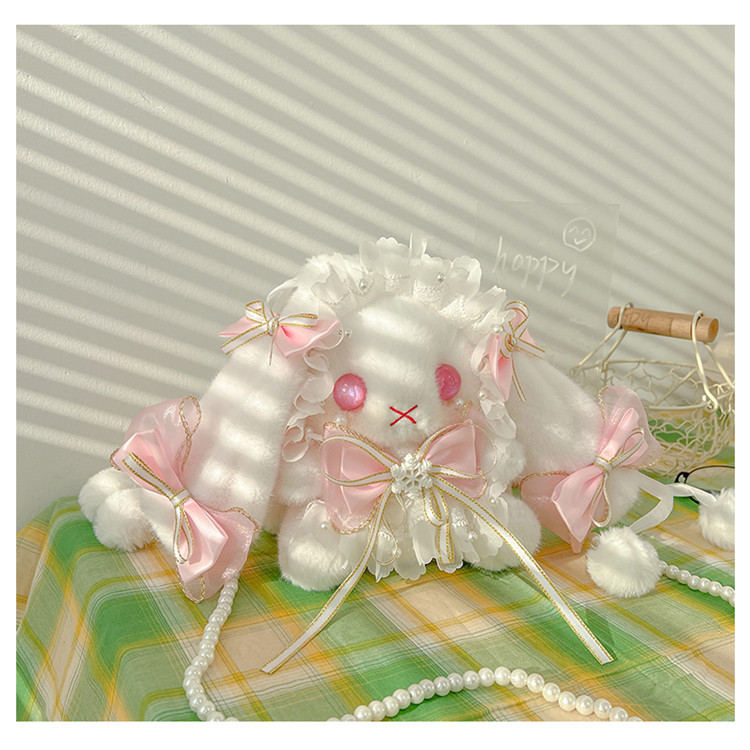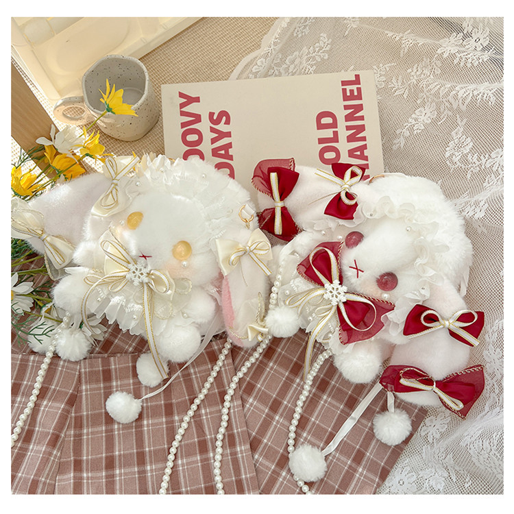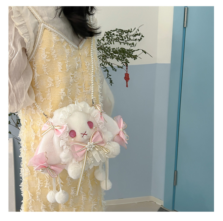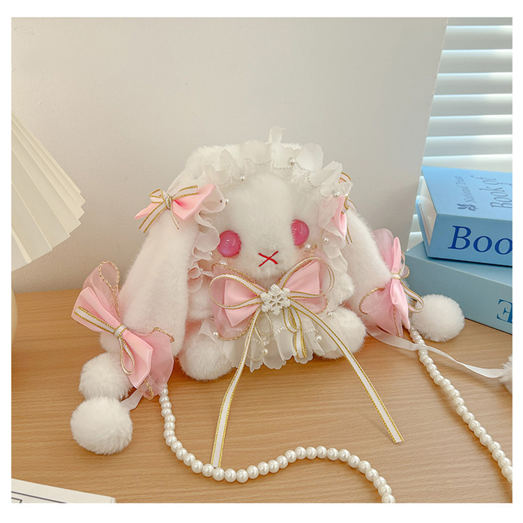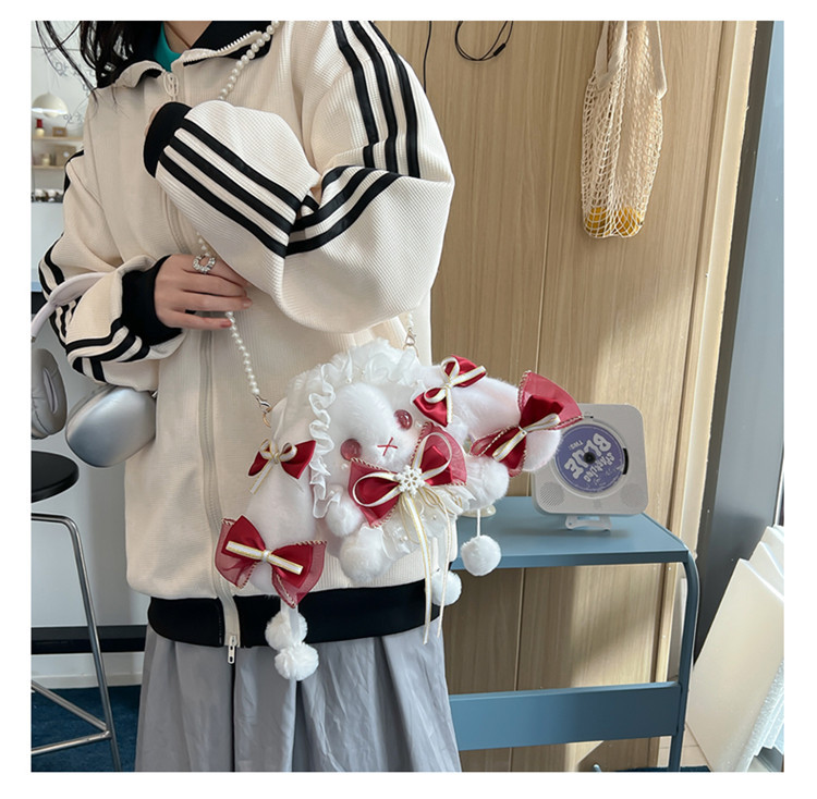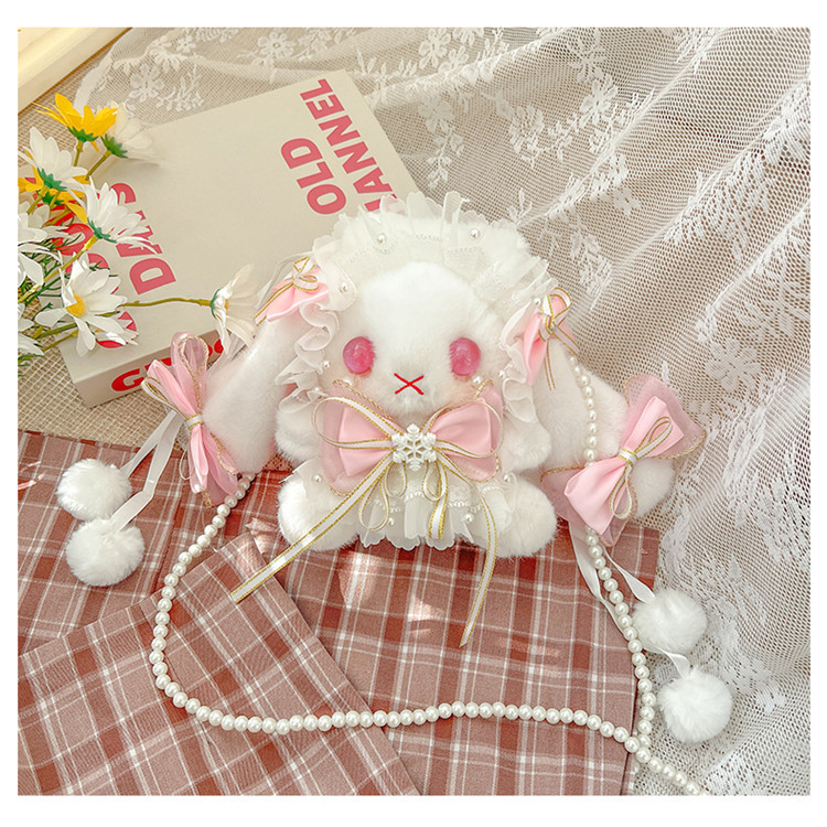 로리 일본 로리타 토끼 가방 2024 새로운 JK 귀여운 소녀 토끼 가방 크로스 바디 백 진주 소프트 소녀 핸드백스토어 가기