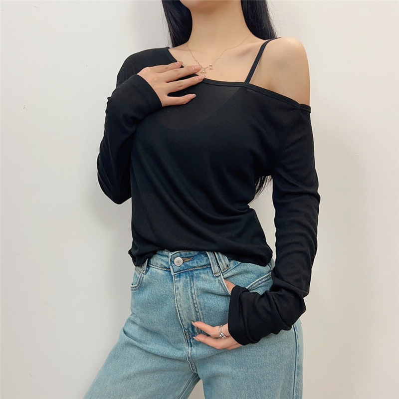 종이 어깨 어깨 셔츠 긴 소매 블라우스 2024 봄과 여름 새로운 패션 느슨한 올 매치 티셔츠 탑