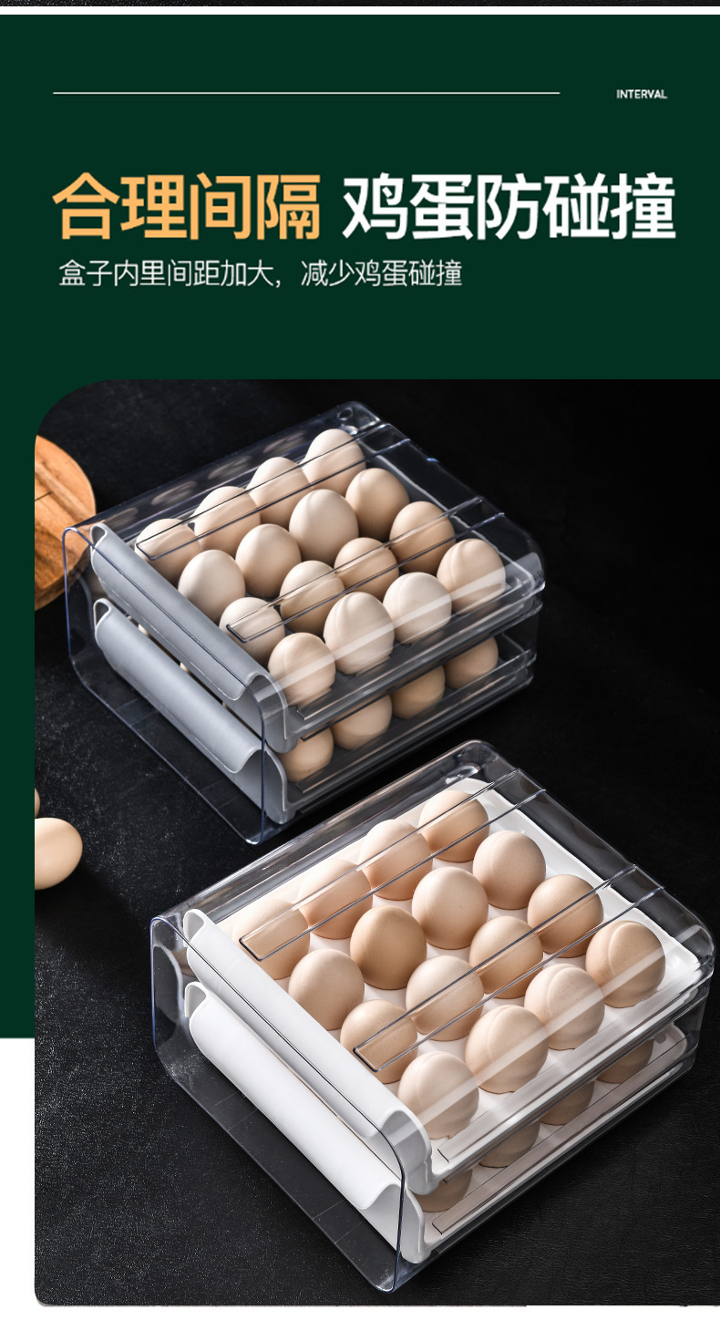 냉장고 계란 보존 상자 PET 투명한 32 셀 이중층 서랍 저장 상자 계란 상자 주방 계란 레코더스토어 가기
