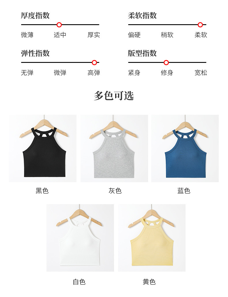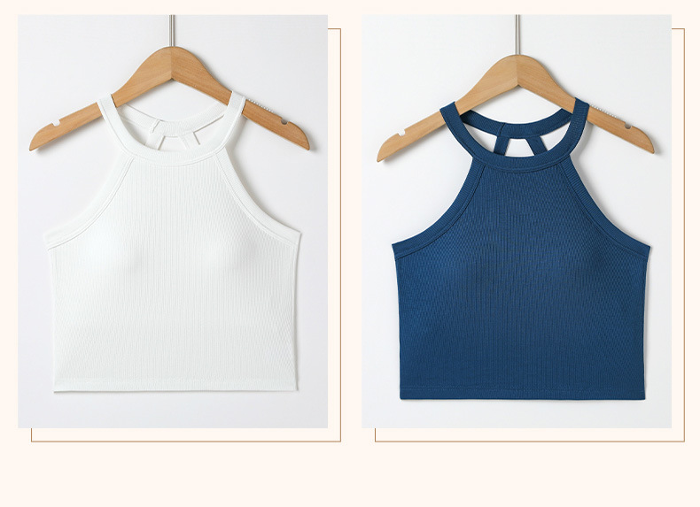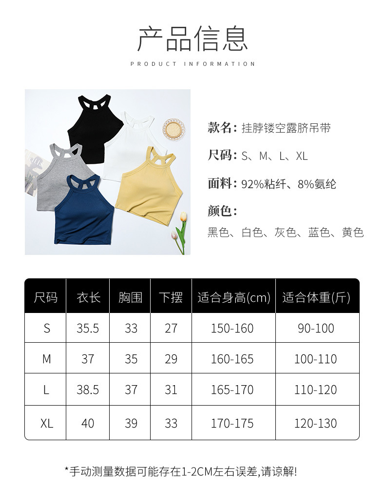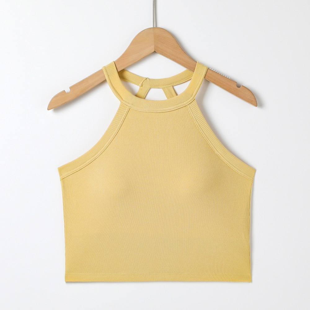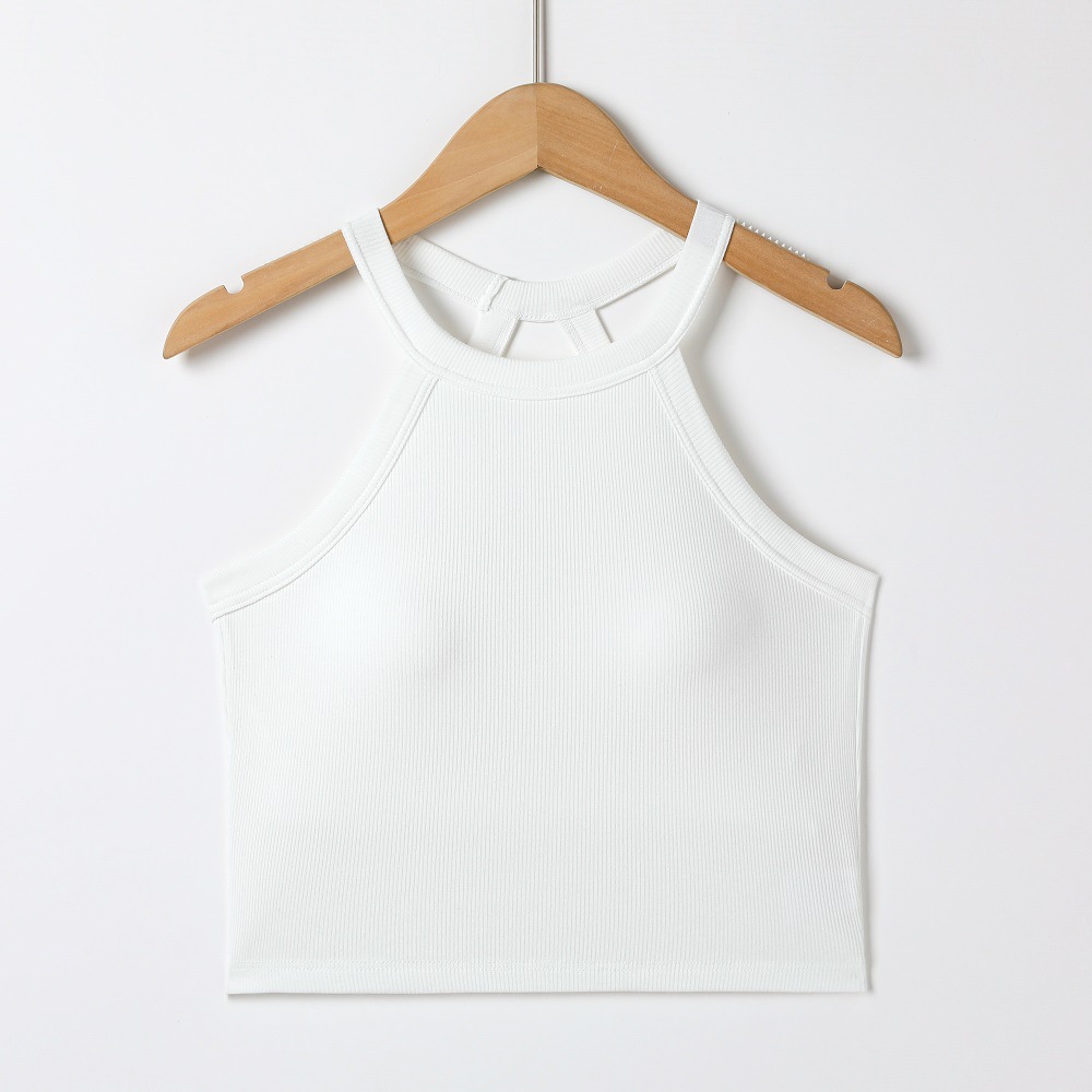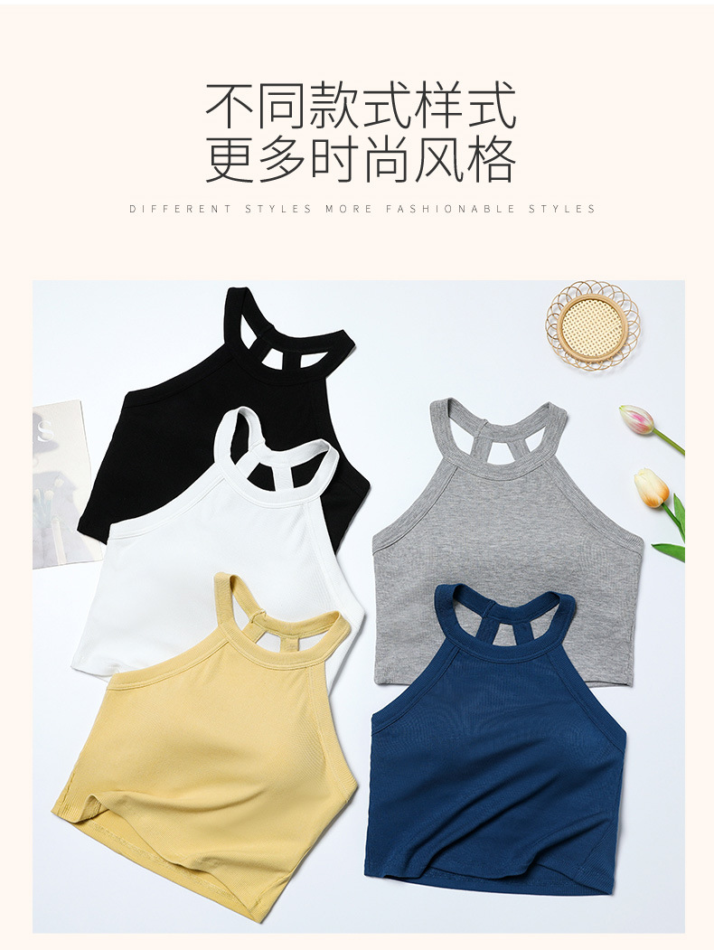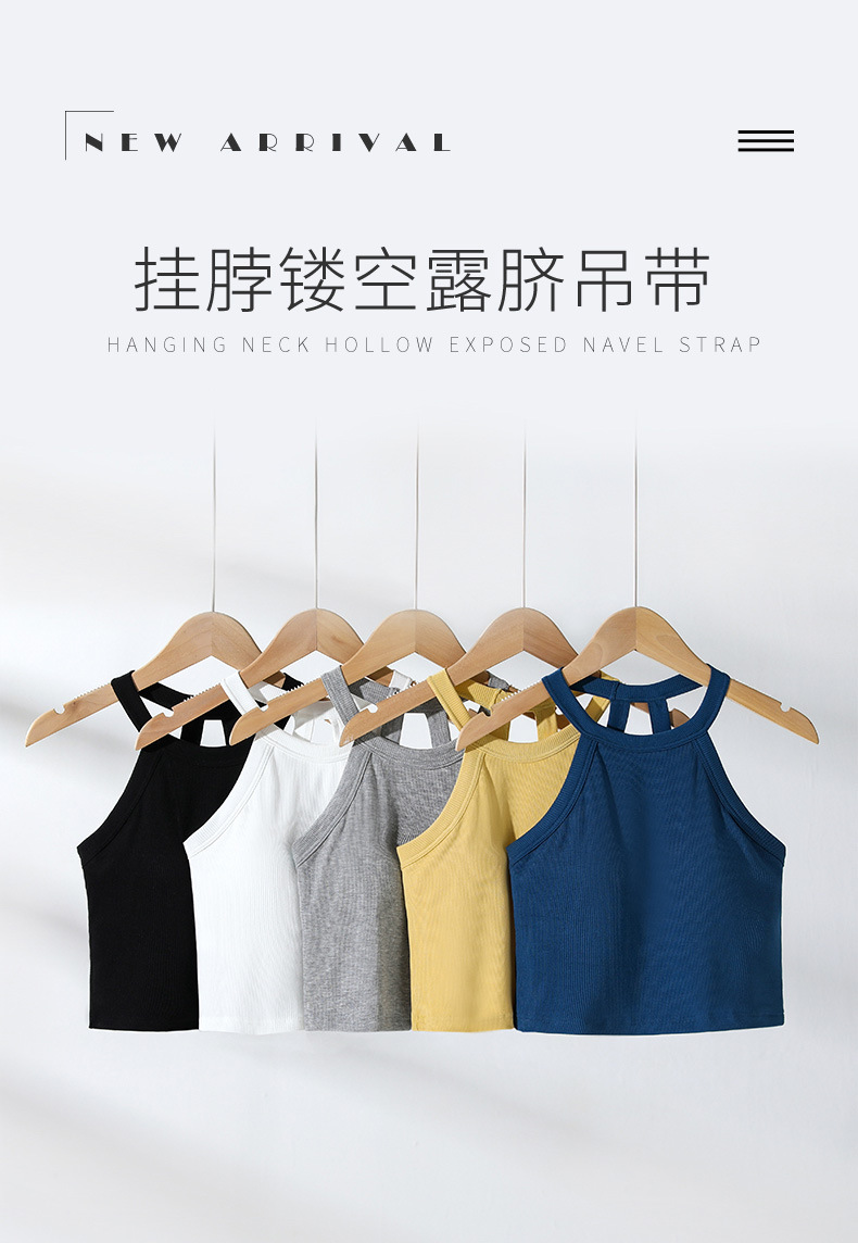 새로운 교수형 목 배꼽 조끼 스파이스 소녀 솔리드 컬러 가슴 패드 여름 디자인 센스 슬링