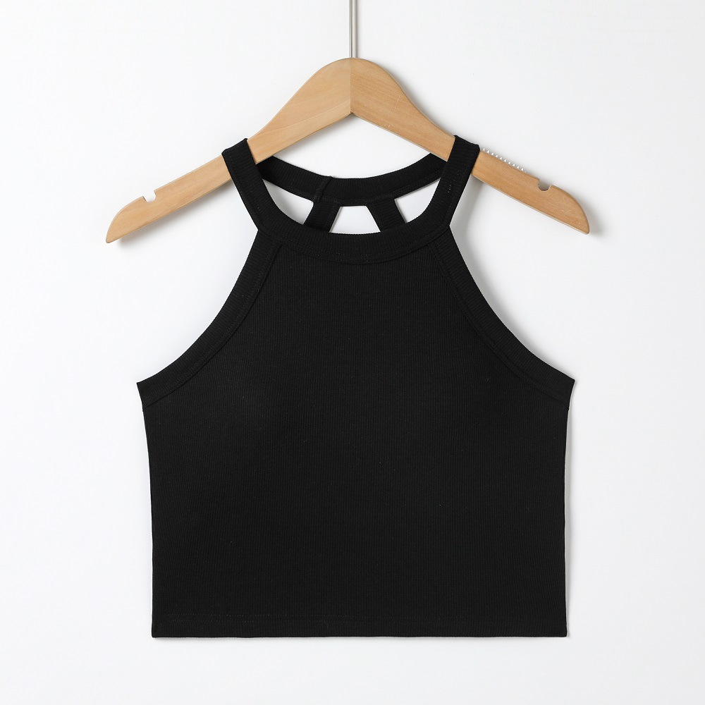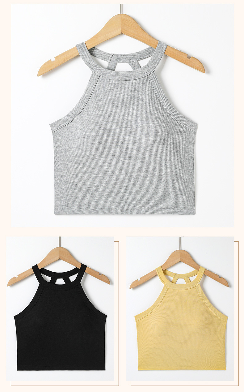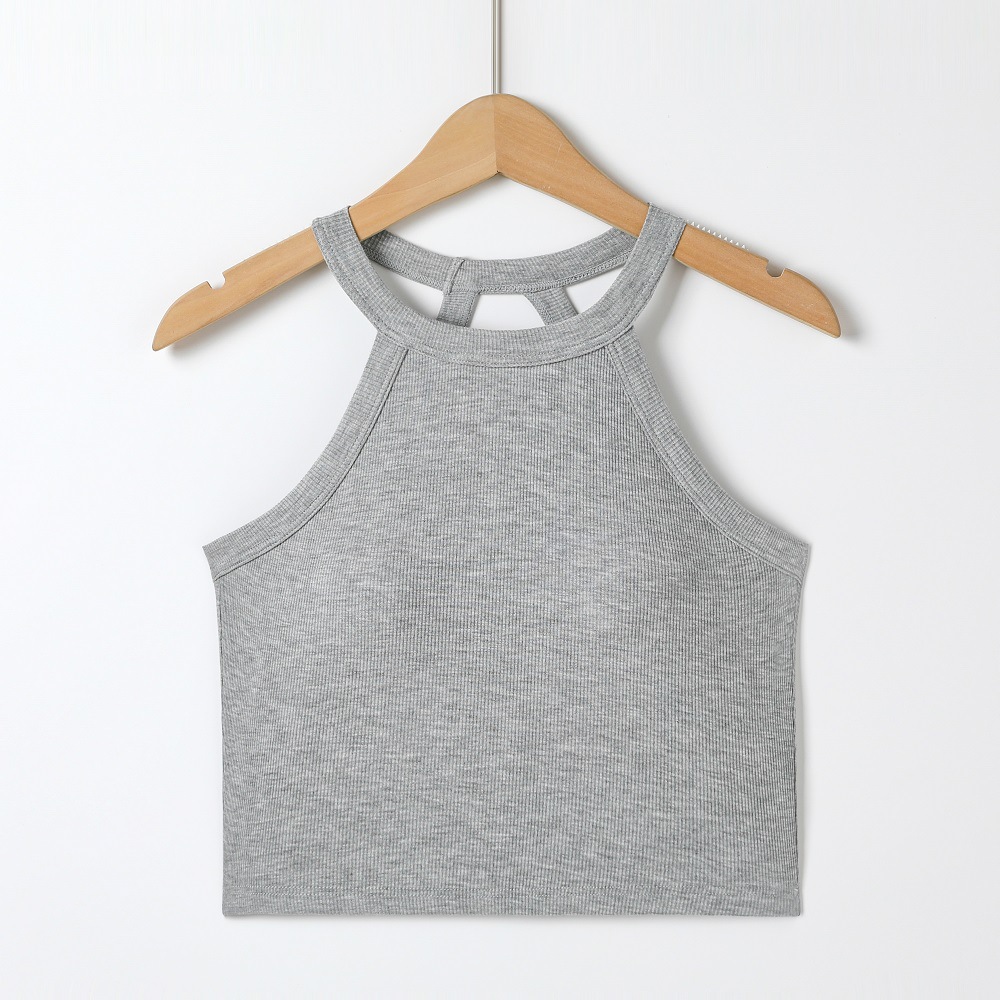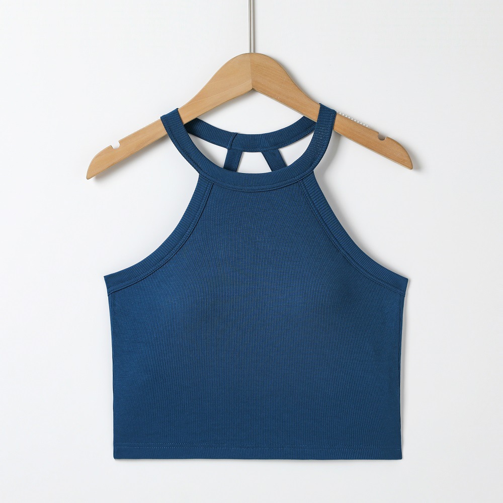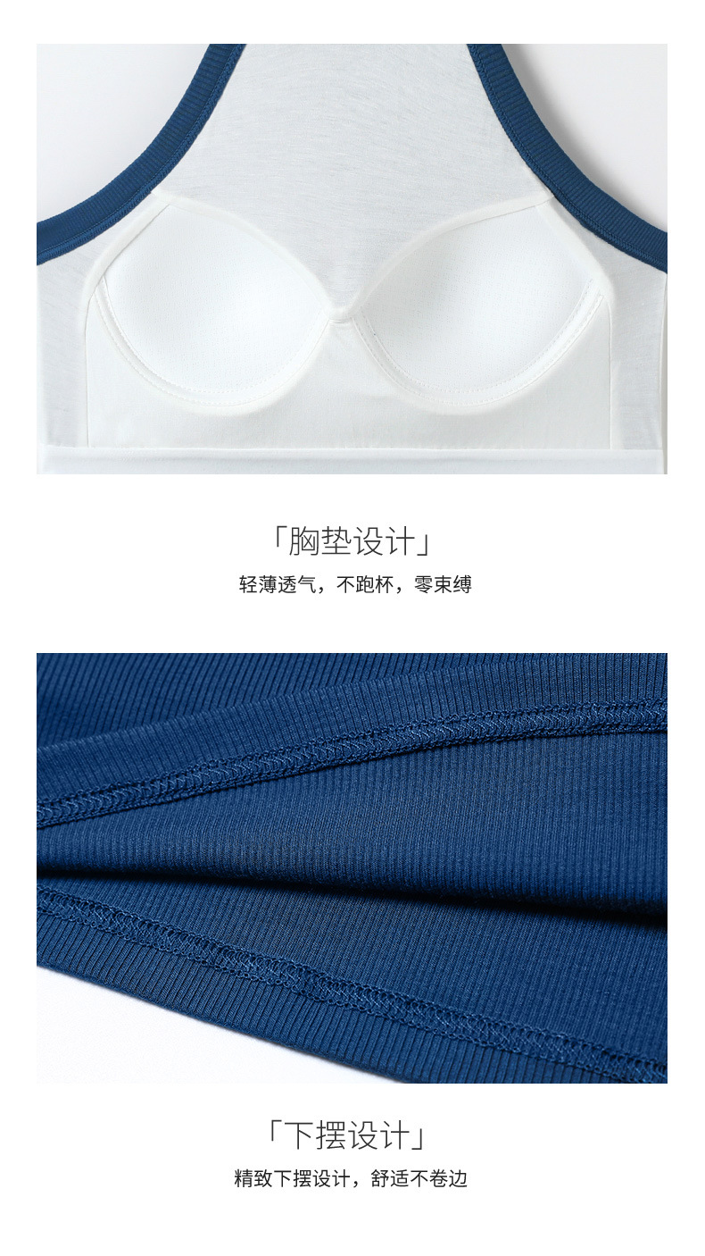 새로운 교수형 목 배꼽 조끼 스파이스 소녀 솔리드 컬러 가슴 패드 여름 디자인 센스 슬링