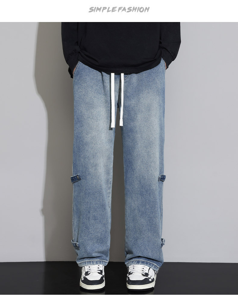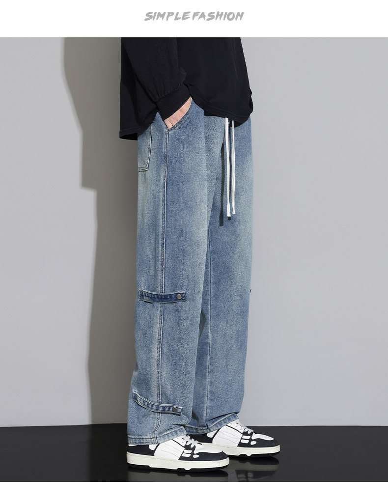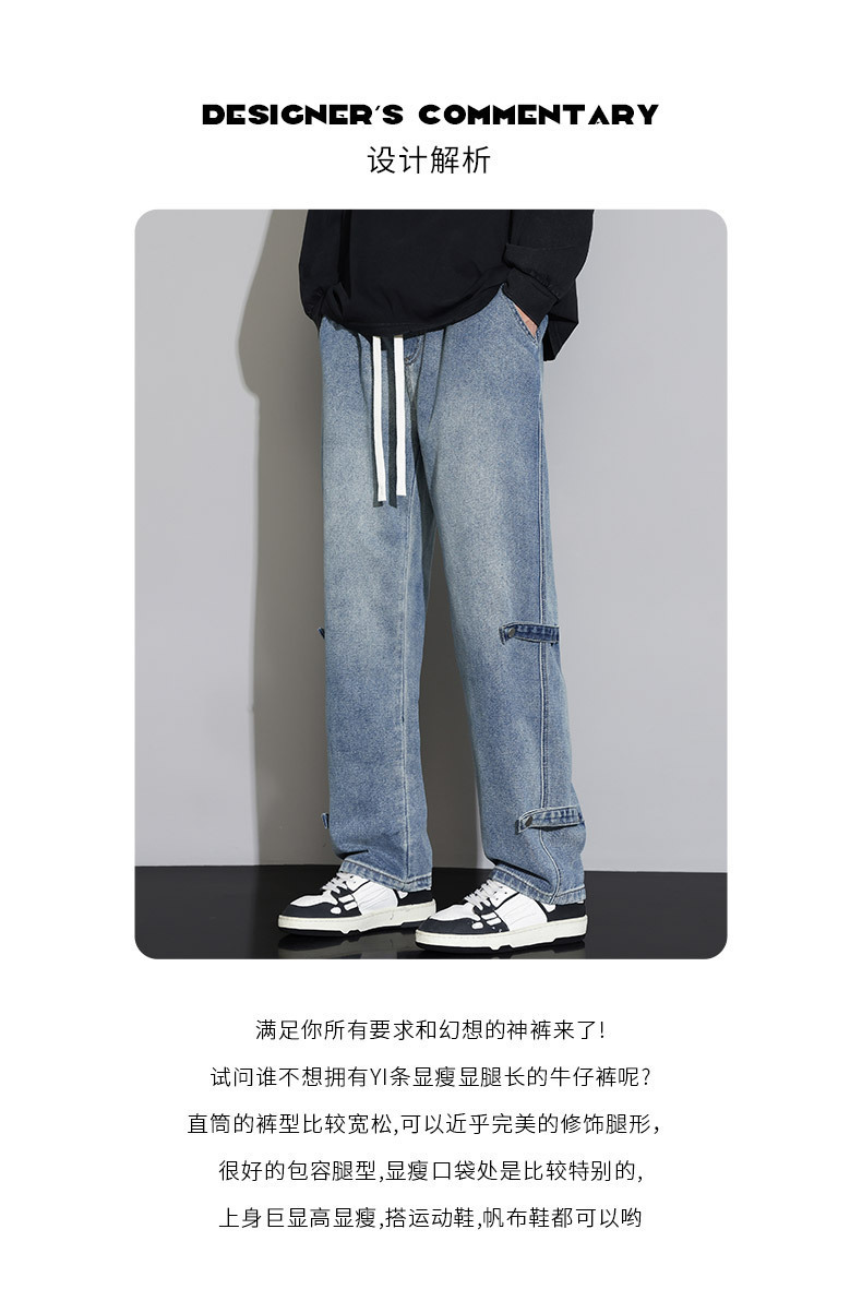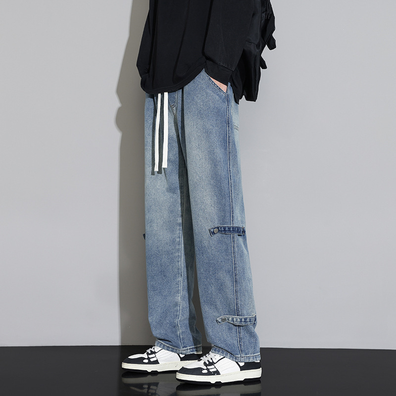 빈티지 툴링 청바지 남성용 봄과 가을 아메리칸 스타일 드로스트링 스트레이트 하이 스트리트 와이드 레그 팬츠 트렌디 브랜드 인즈 팬츠스토어 가기