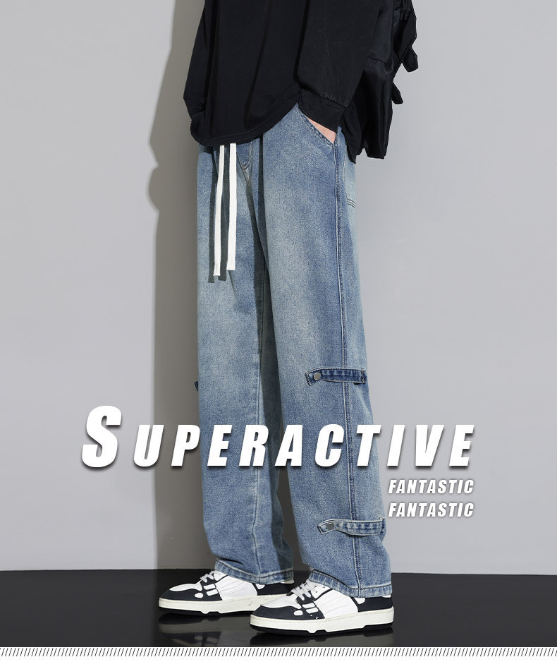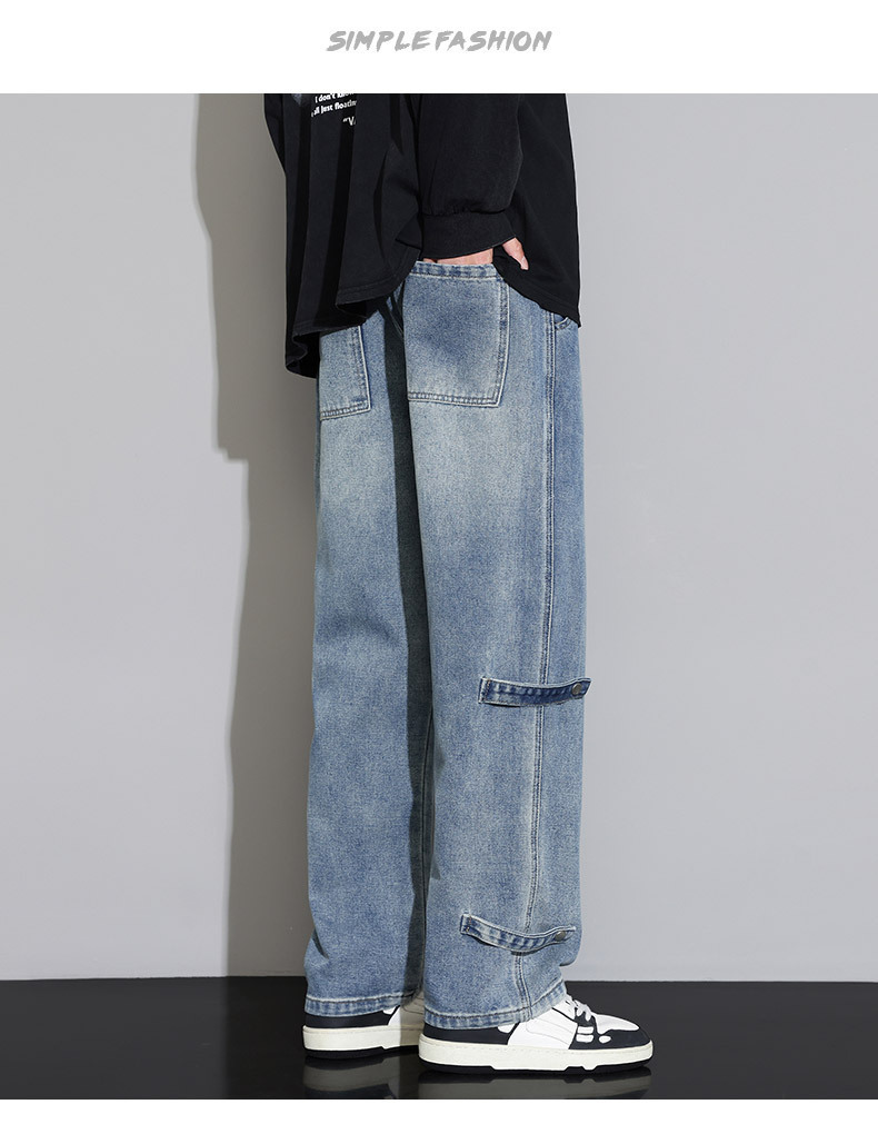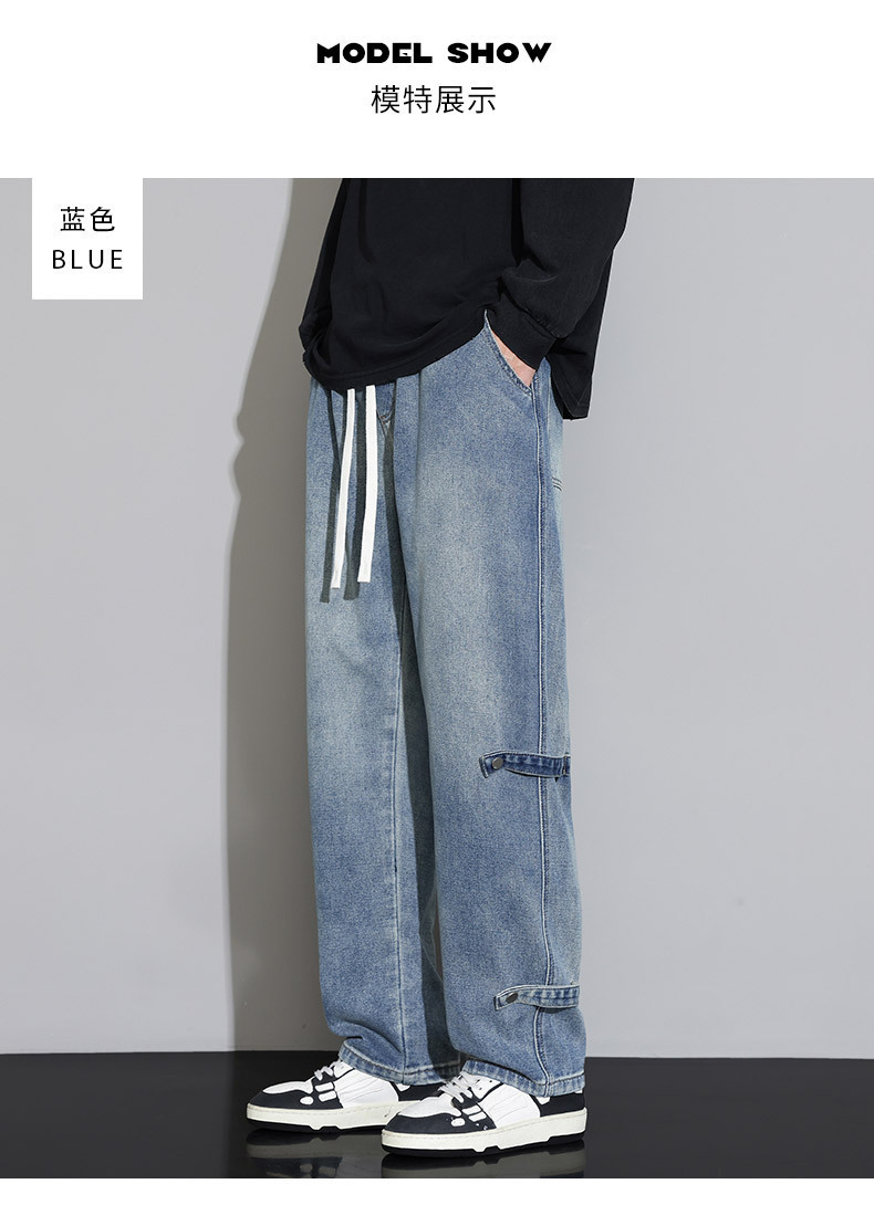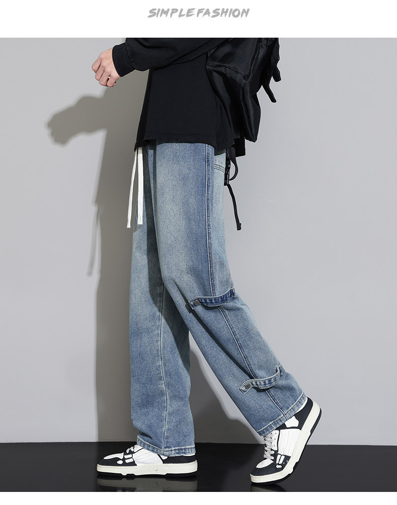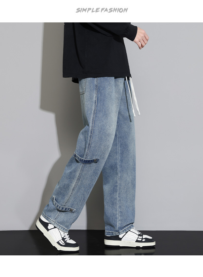빈티지 툴링 청바지 남성용 봄과 가을 아메리칸 스타일 드로스트링 스트레이트 하이 스트리트 와이드 레그 팬츠 트렌디 브랜드 인즈 팬츠스토어 가기
