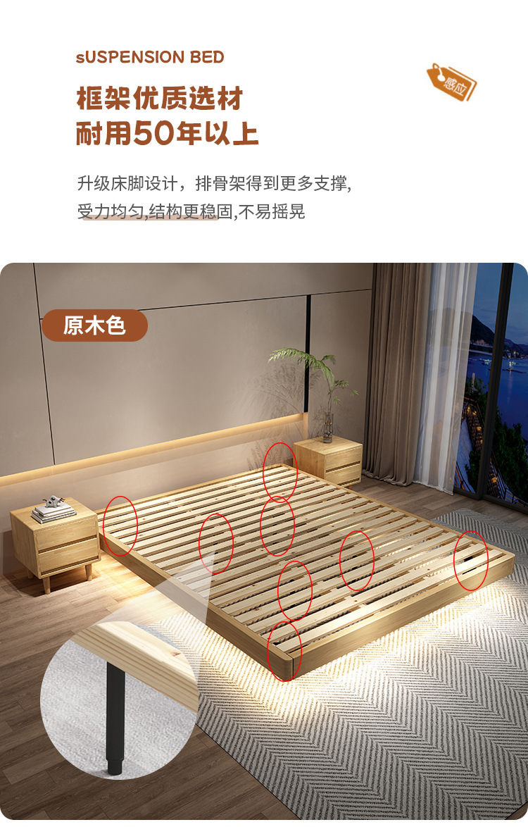 단단한 나무 침대 현대 간단한 저장 마스터 침실 가구 더블 침대 없음 침대 옆 싱글 서스펜션 침대 직접 다다미 침대스토어 가기