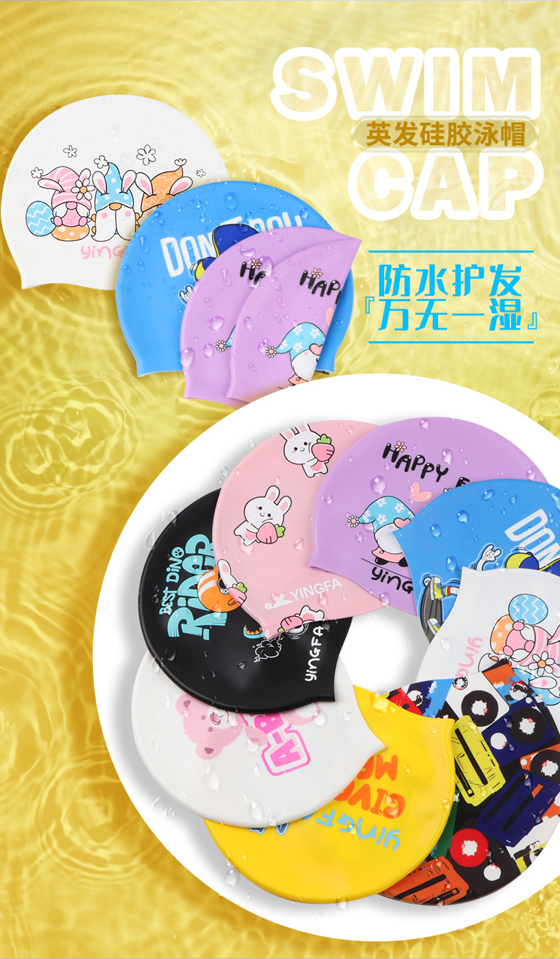 영국 머리 인쇄 수영 모자 실리콘 방수 탄성 머리 편안한 수영 모자 어린이 성인 긴 머리 귀 보호 수영 모자