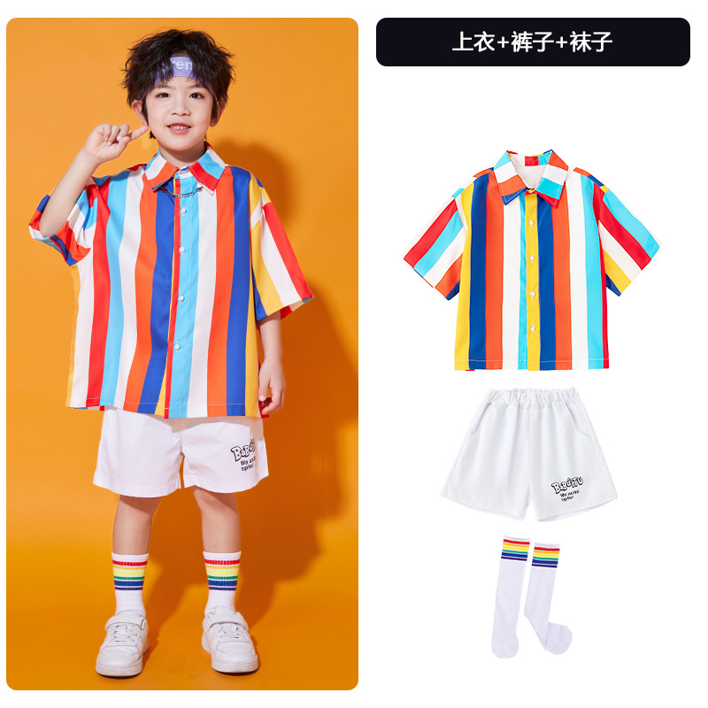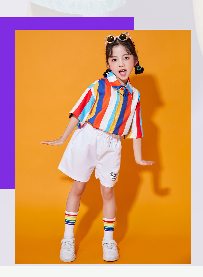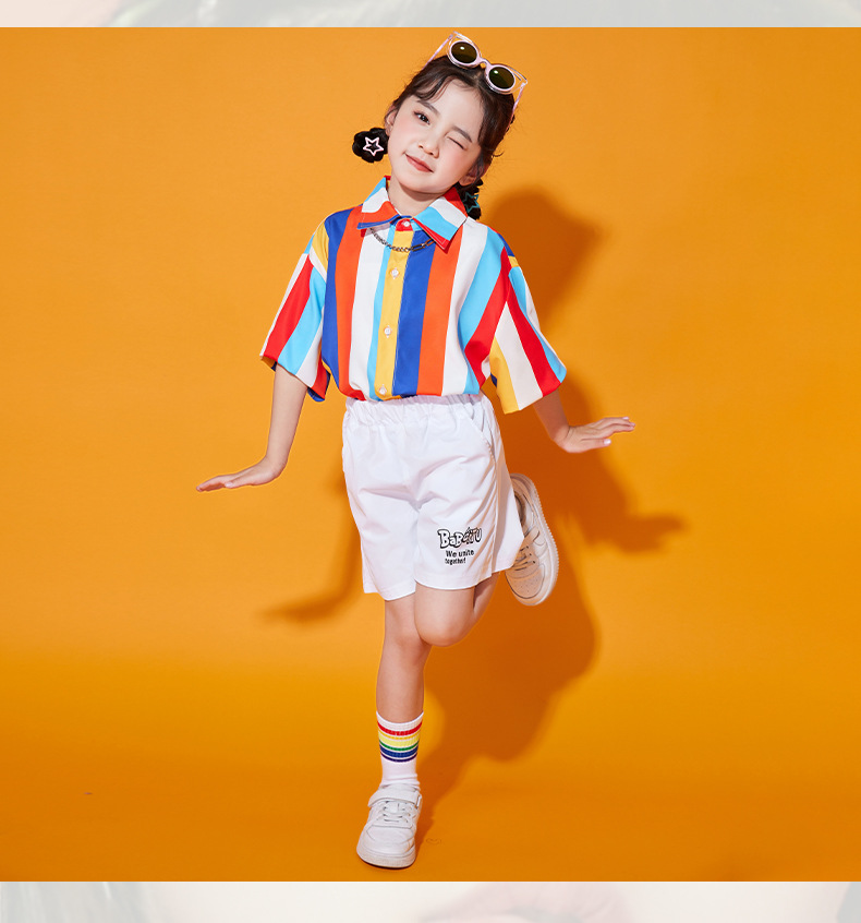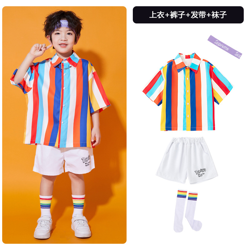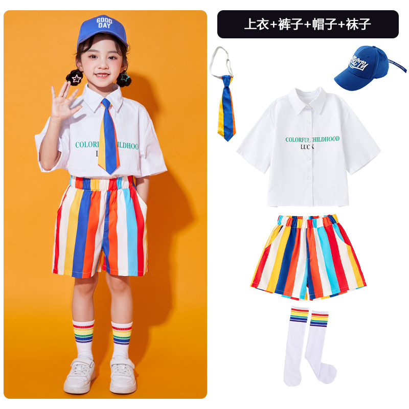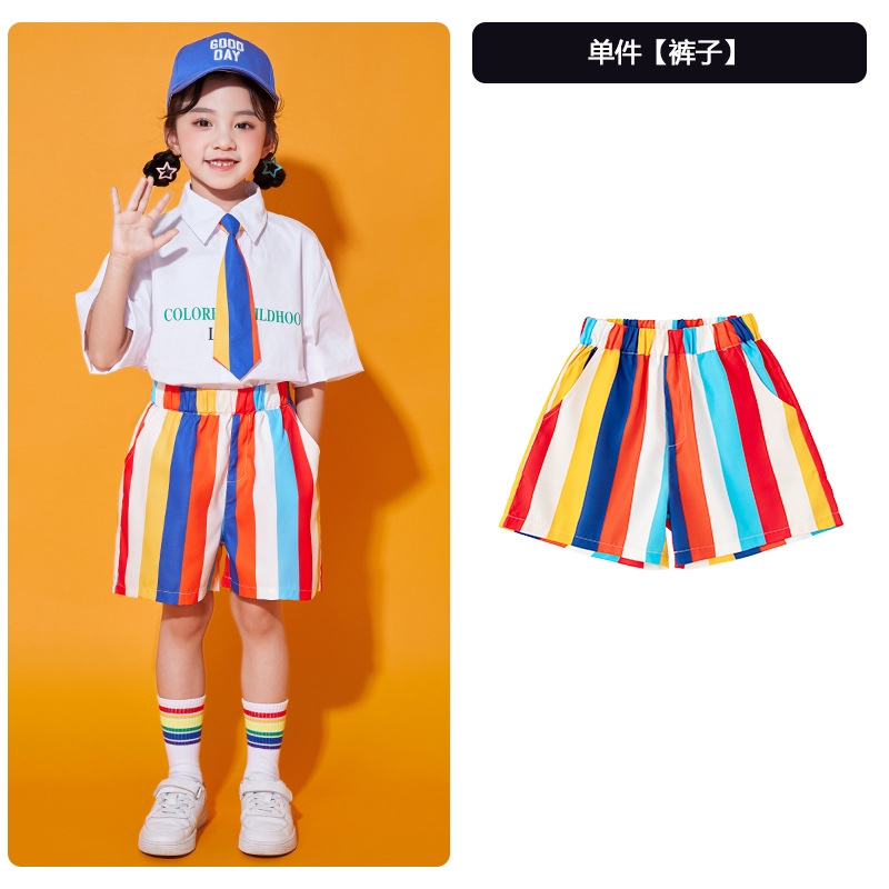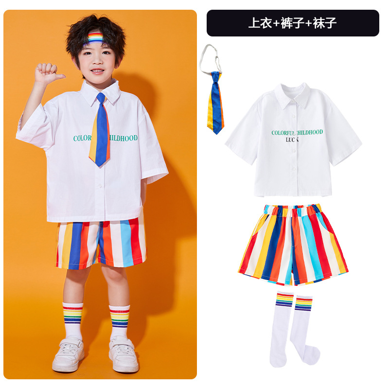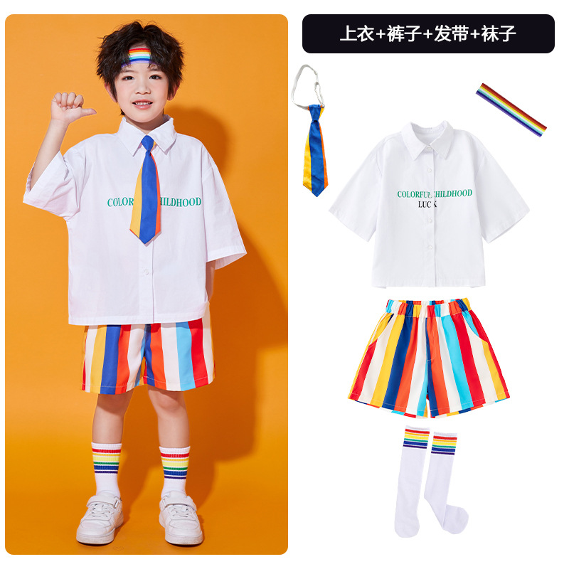 • DL08 그린 화이트 셔츠 D05 컬러 스트립 반바지 컬러 스트립 타이 컬러 스트립 스타킹 레인보우 헤어 밴드