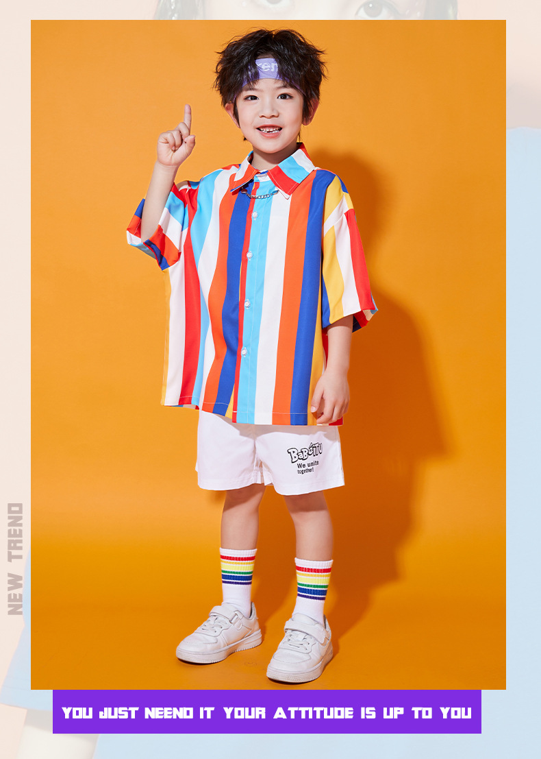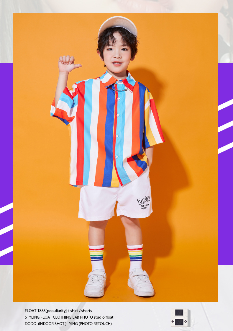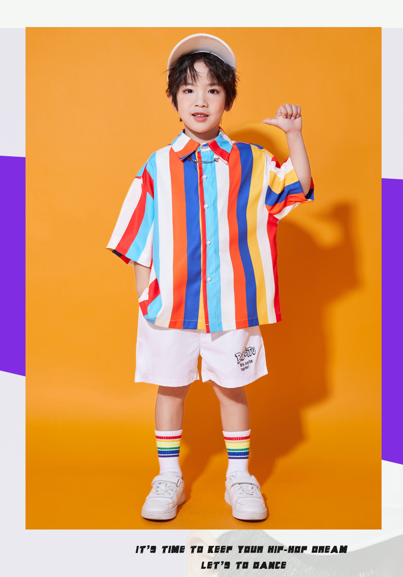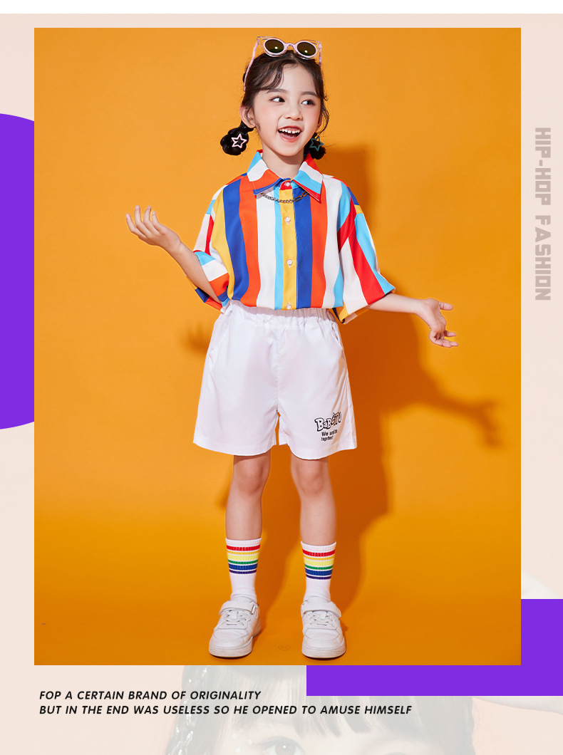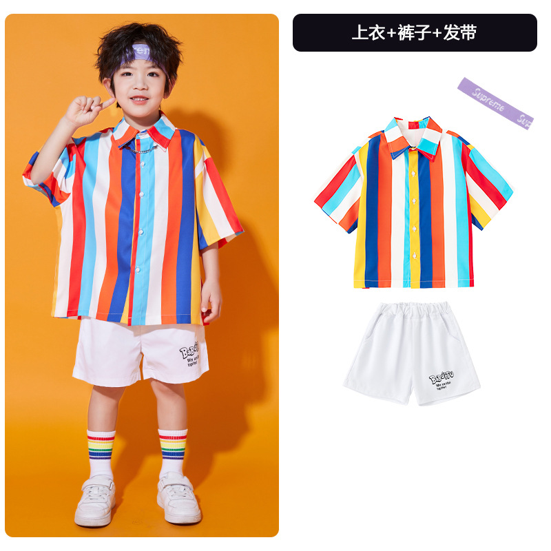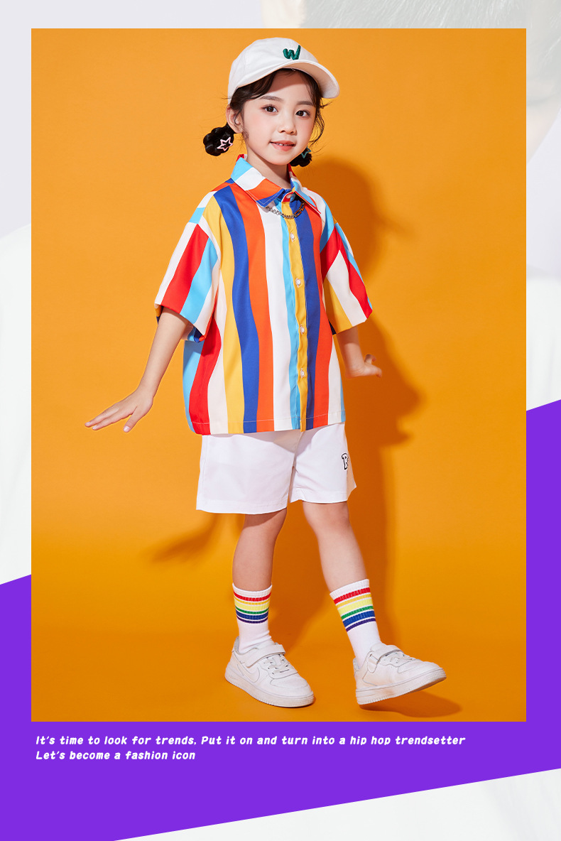 • DL08 그린 화이트 셔츠 D05 컬러 스트립 반바지 컬러 스트립 타이 컬러 스트립 스타킹 레인보우 헤어 밴드