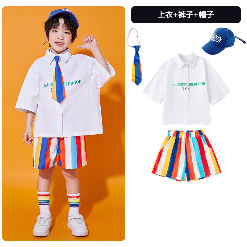 • DL08 그린 화이트 셔츠 D05 컬러 스트립 반바지 컬러 스트립 넥타이 블루 야구 모자