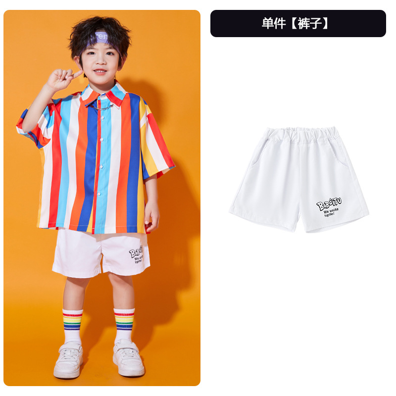 • DL08 컬러 스트라이프 셔츠 D02 흰색 검은 단어 반바지